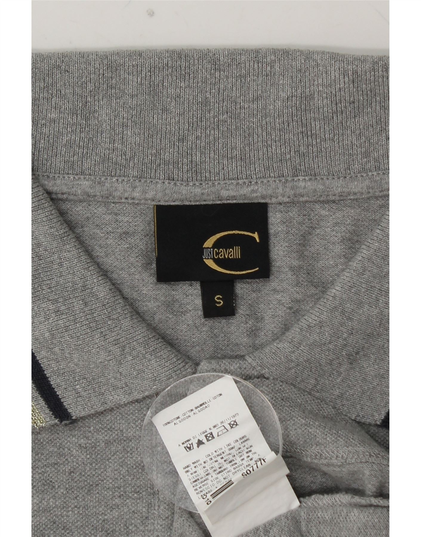 JUST CAVALLI Tricou polo cu mânecă lungă pentru femei UK 10 mic bumbac gri