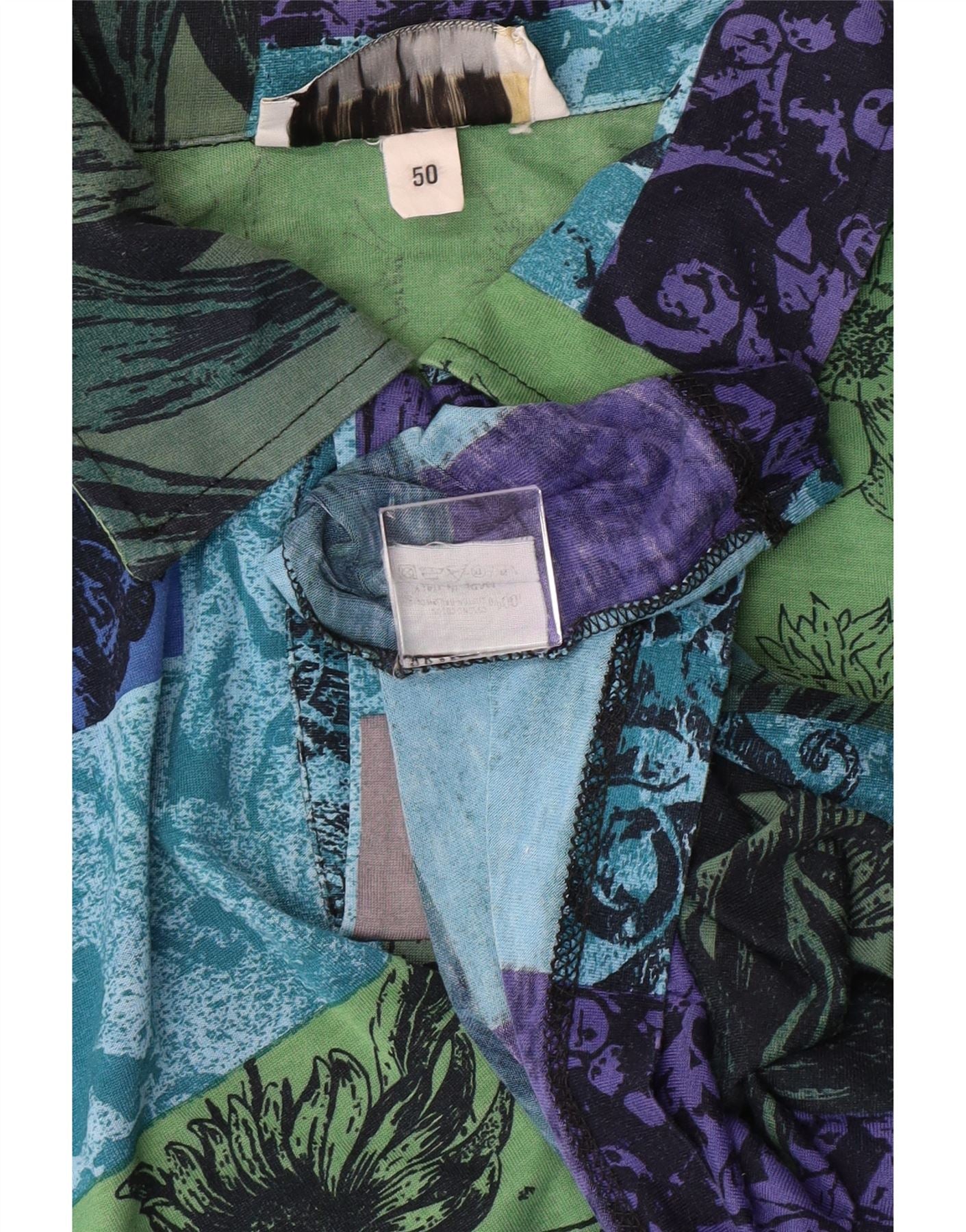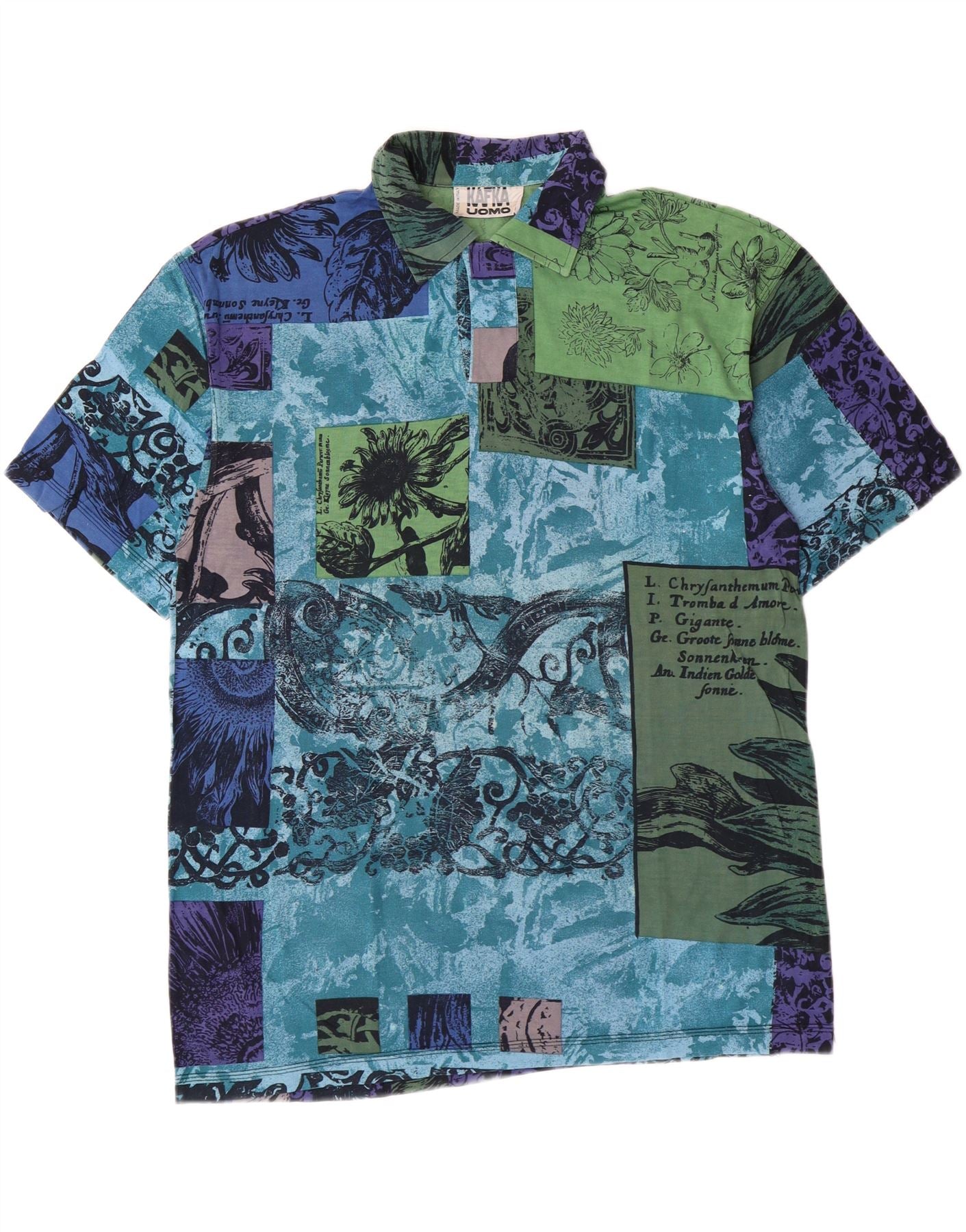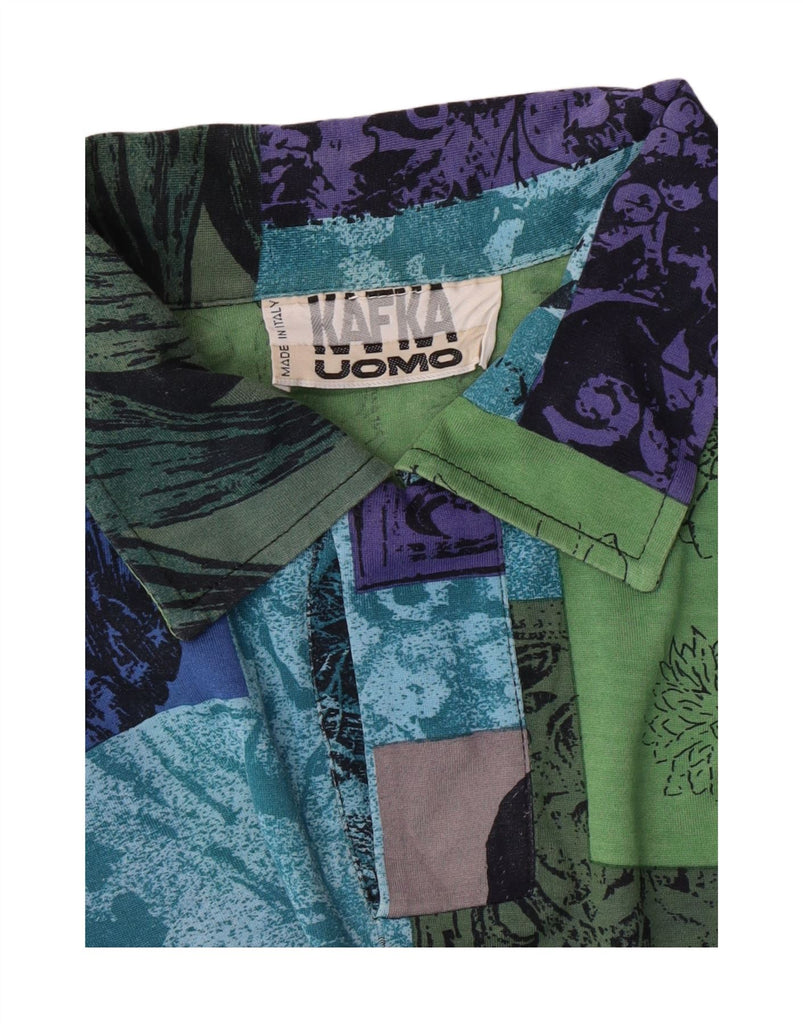 KAFKA Mens Polo Shirt IT 50 Medium Multicoloured Patchwork Cotton