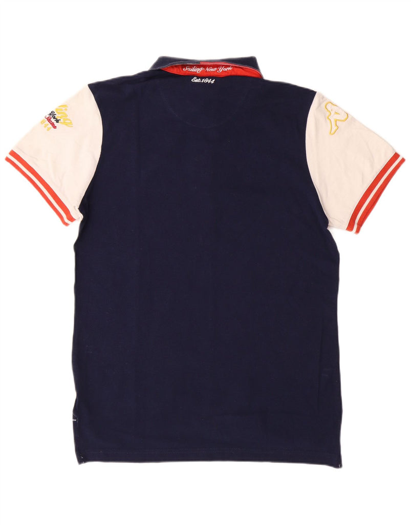 Cămașă polo cu grafică KAPPA pentru bărbați, bumbac color-bloch, albastru marin mediu
