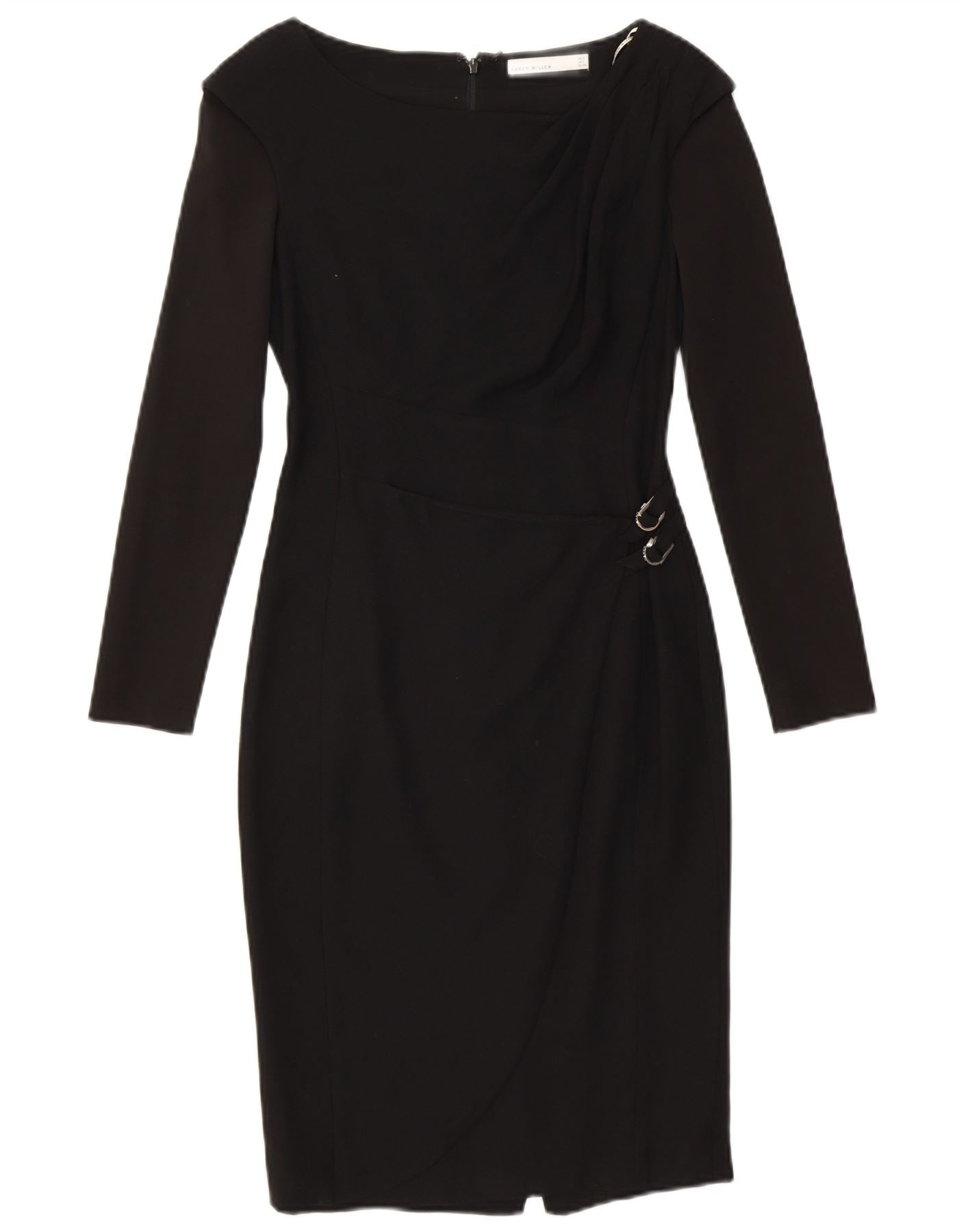 KAREN MILLEN Womens Long Sleeve Sheath Dress UK 6 XS Black Viscose