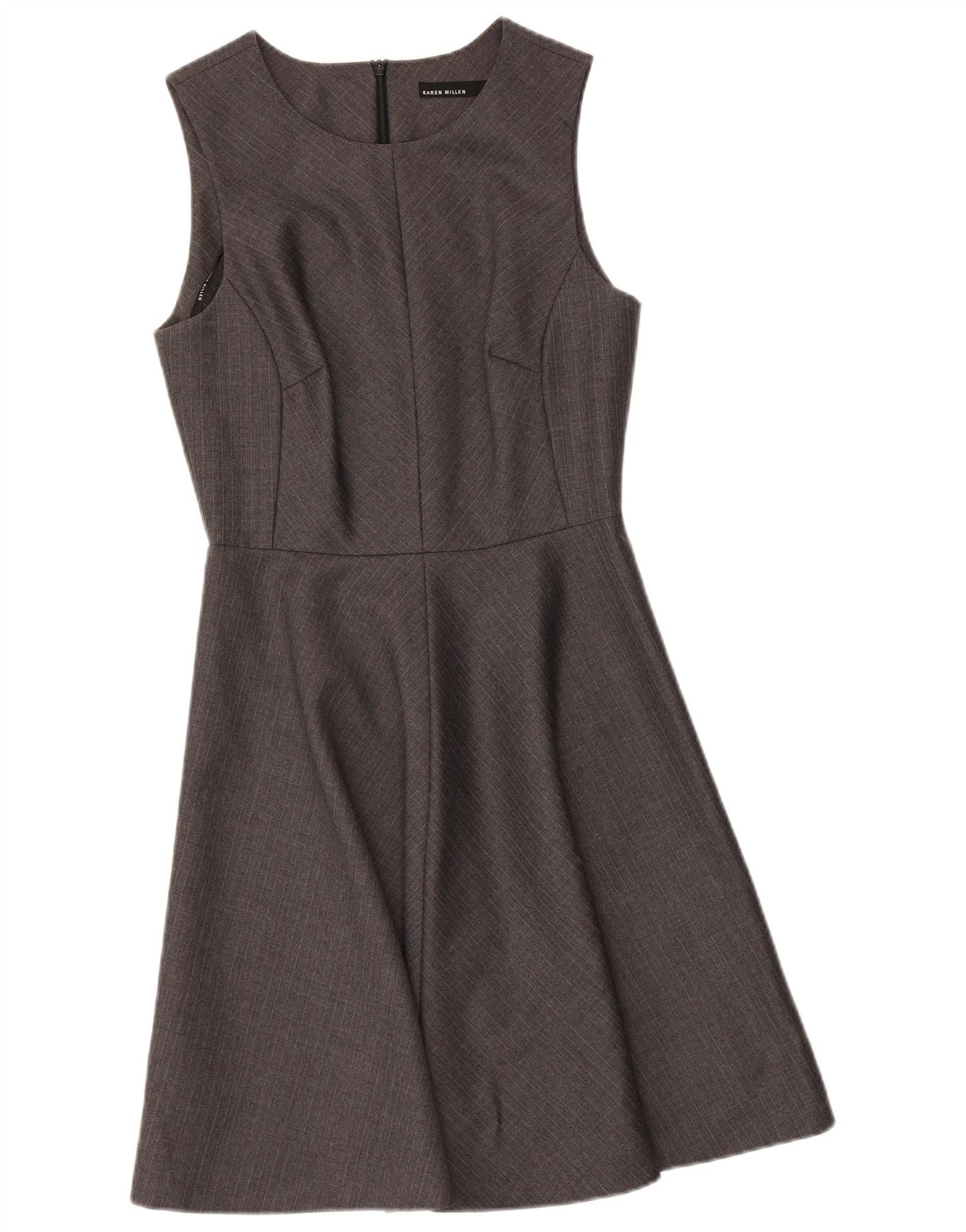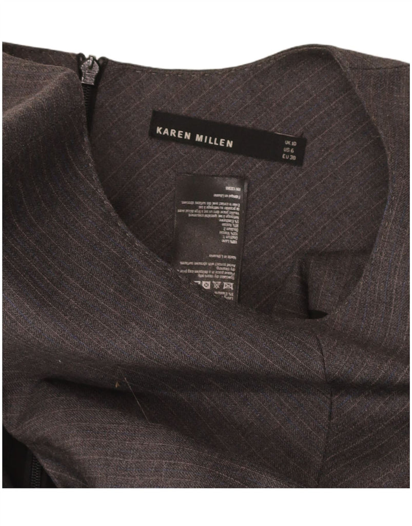 KAREN MILLEN Womens Sleeveless A-Line Dress UK 10 Small Grey Pinstripe