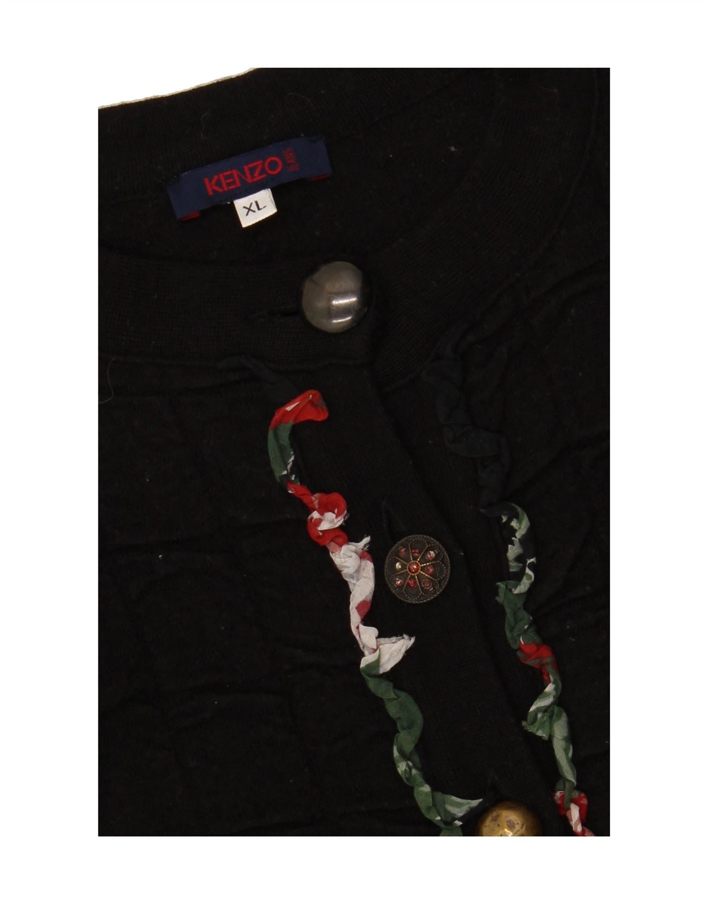 KENZO Girls Crop Cardigan Sweater 12-13 Years XL Black Striped Wool