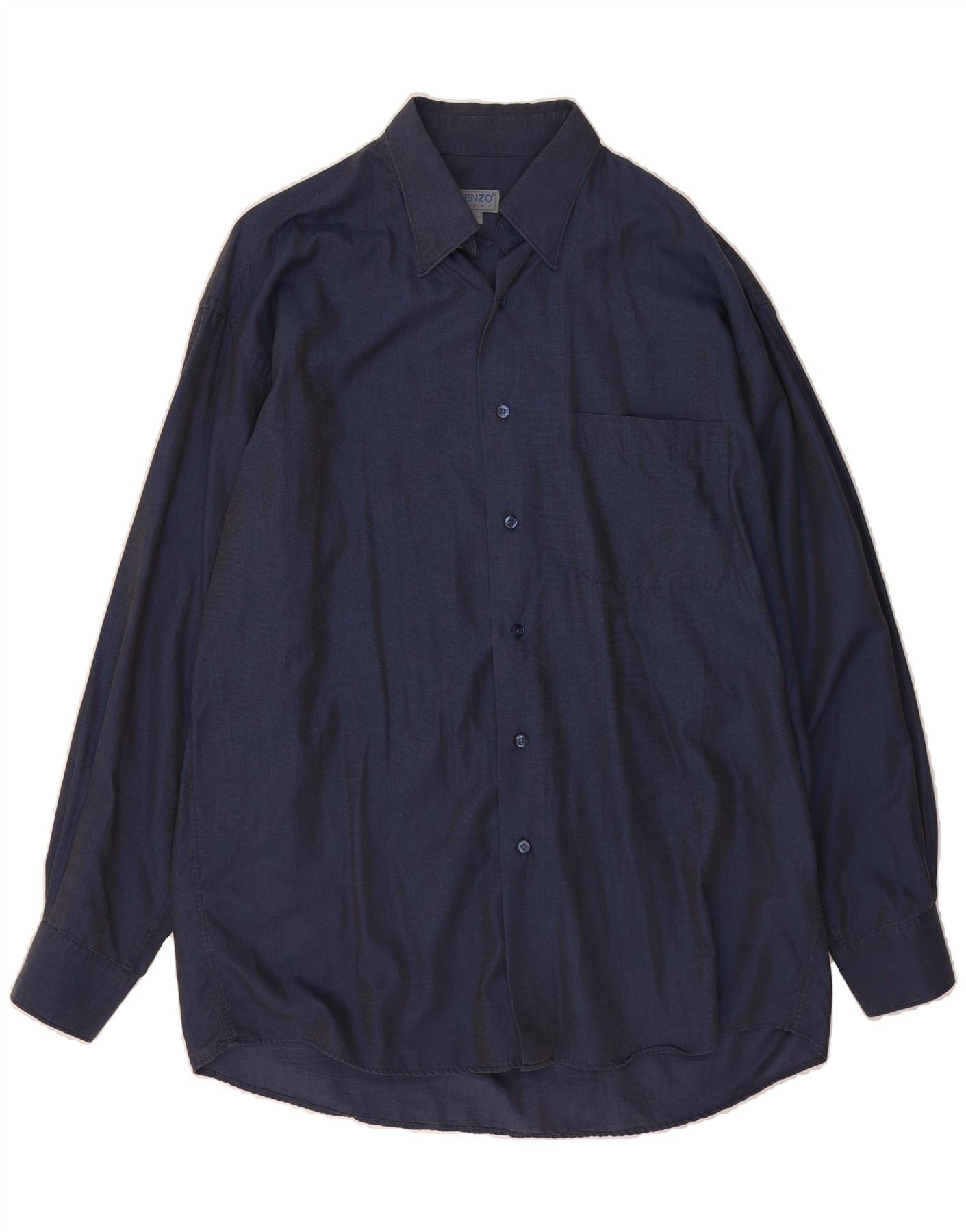 - AI Description: This pre-owned Kenzo shirt, crafted in Japan, is a classic wardrobe staple. The navy blue, striped shirt features long sleeves, a collared neckline and a button closure. Its regular fit ensures comfort, while the woven fabric offers durability. This stylish shirt is in excellent condition and features practical pockets. Label size: 46 R.