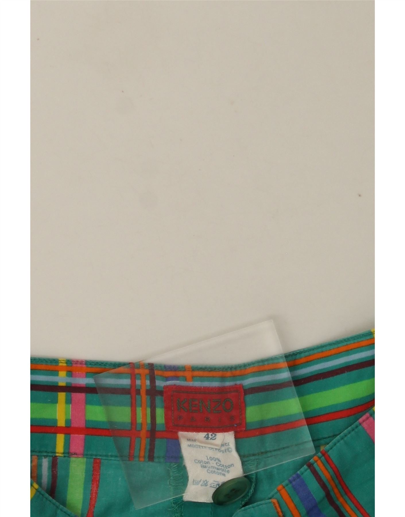 Pantaloni scurti chino cu talie înaltă KENZO pentru femei EU 42 mari W30 bumbac carouri verzi