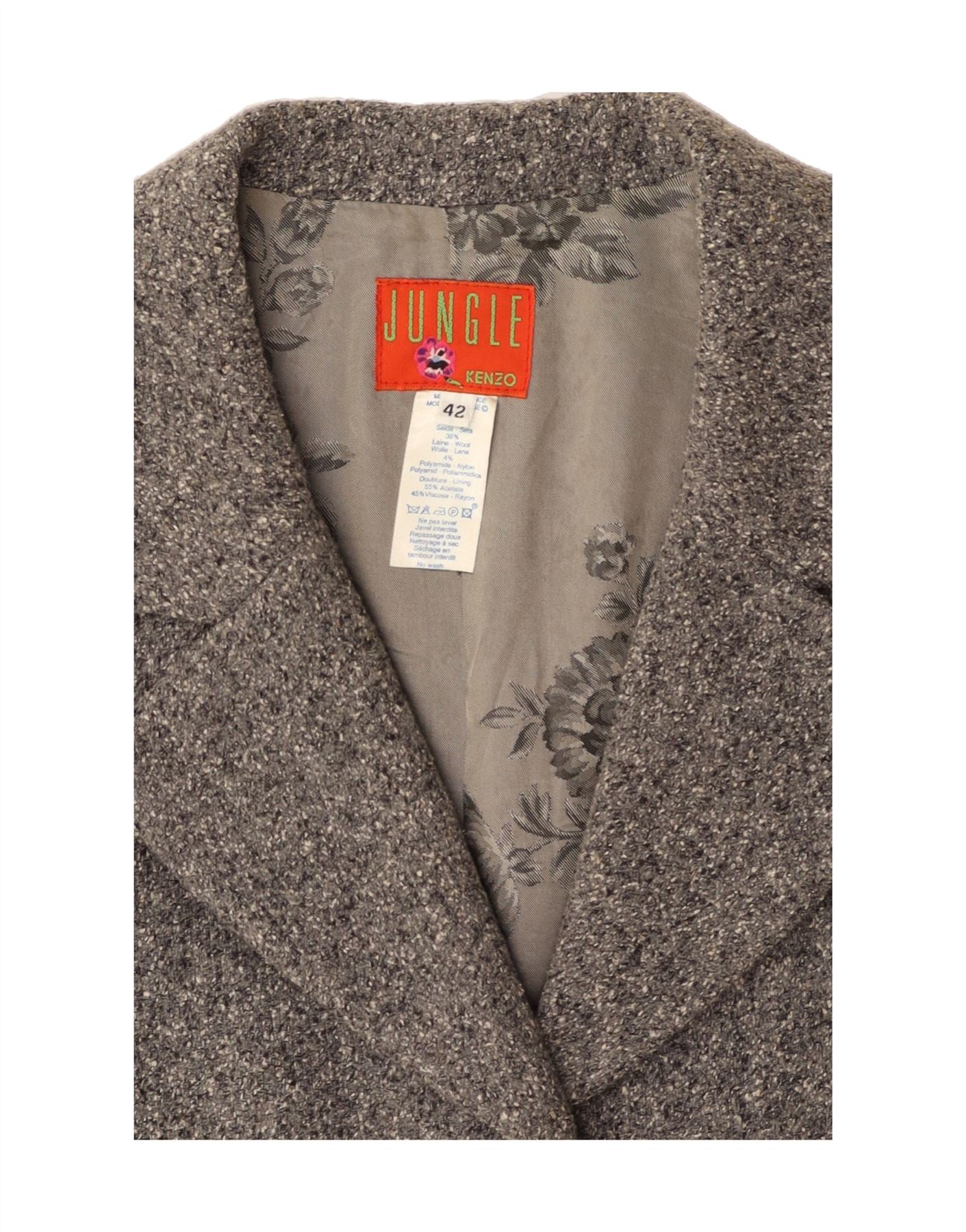 KENZO Womens Jungle 3 Button Blazer Jacket IT 42 Medium Grey Silk