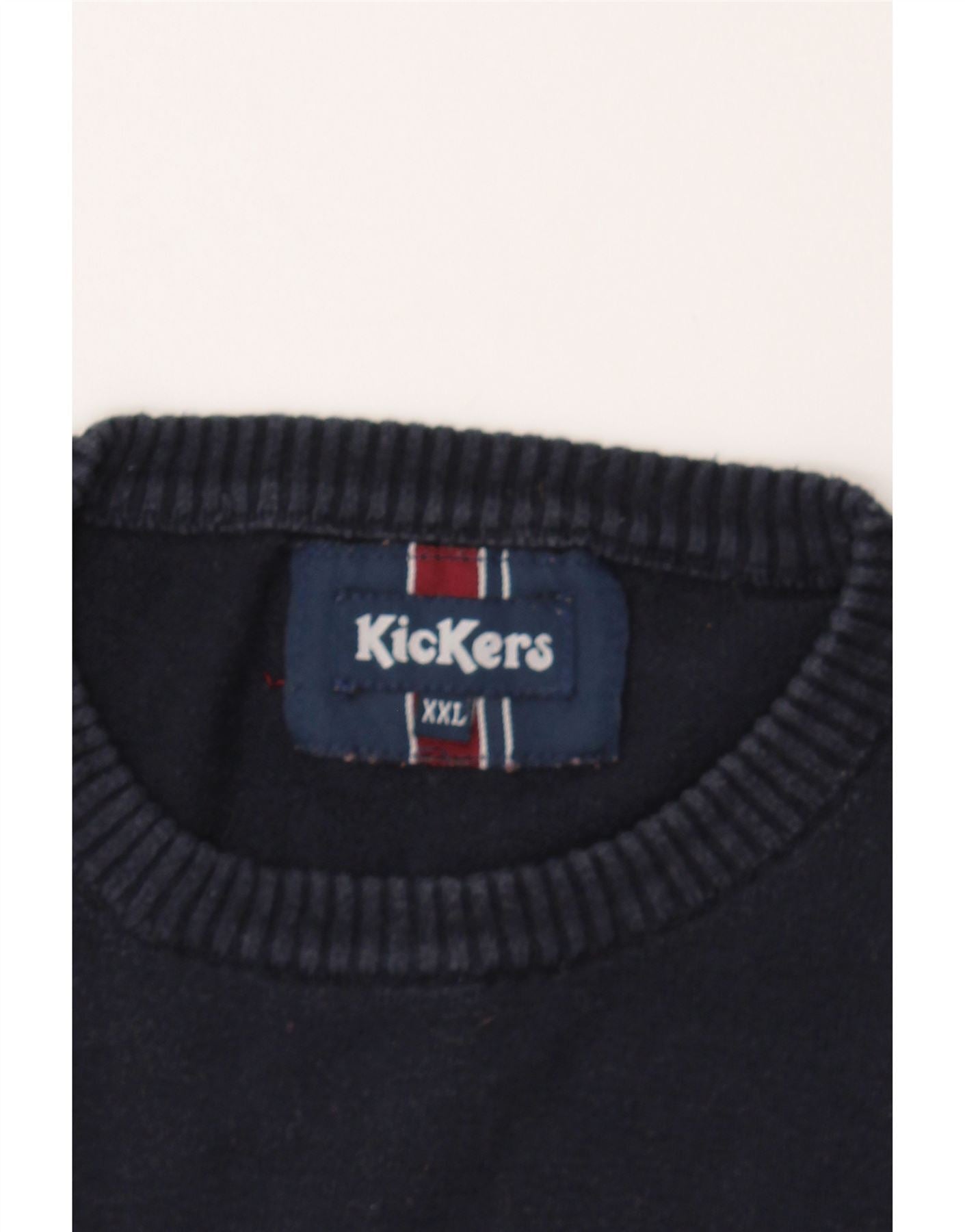KICKERS Mens Crew Neck Jumper Sweater 2XL Navy Blue Striped