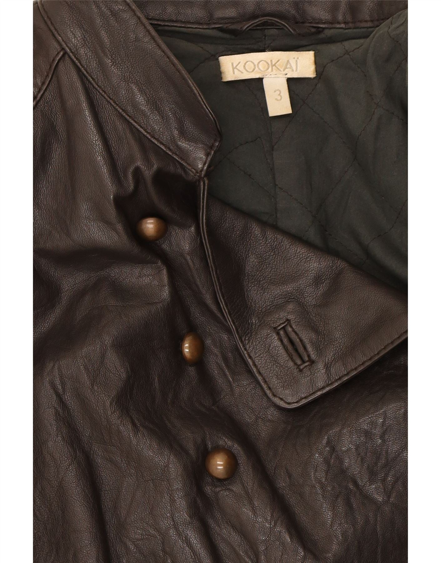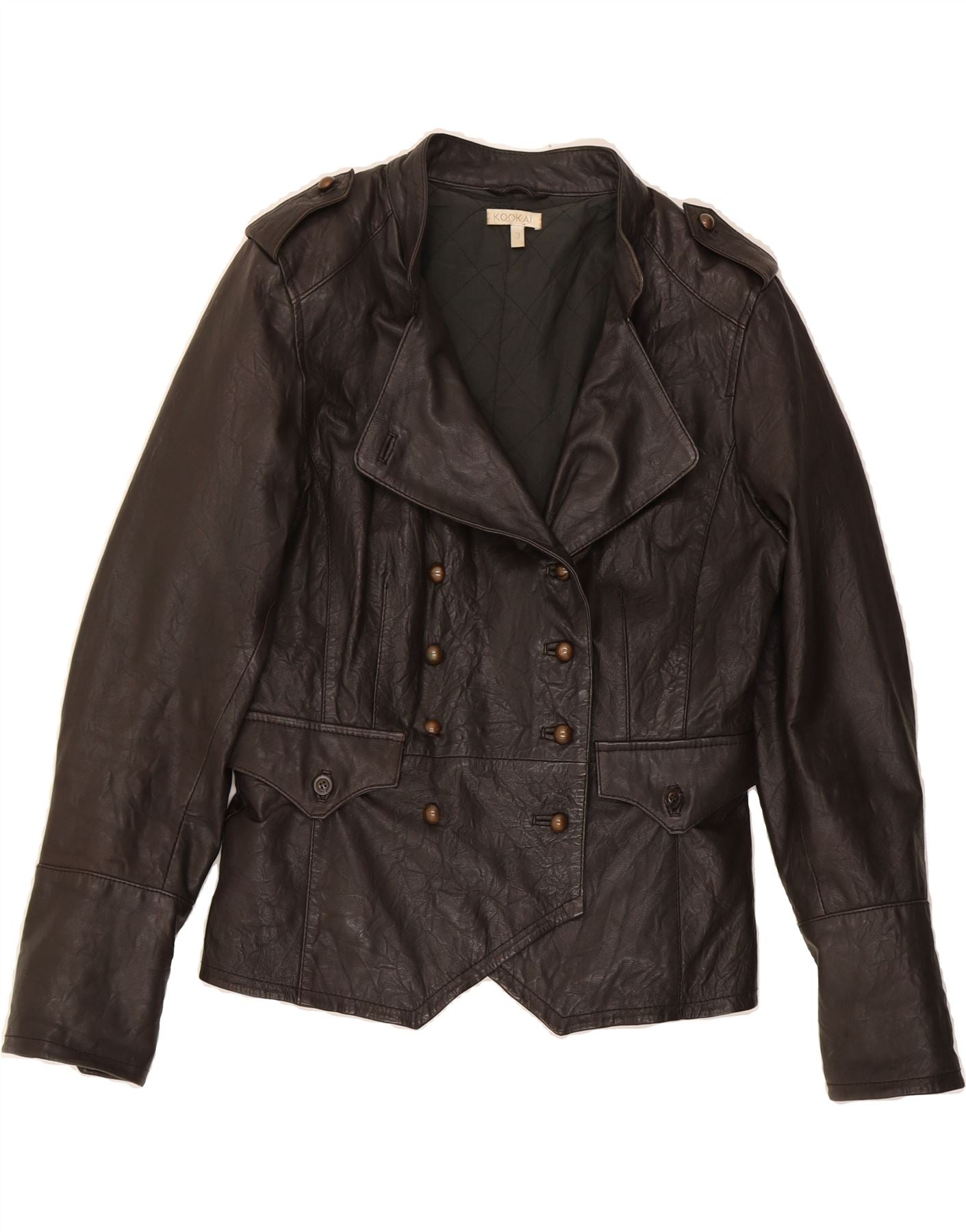 KOOKAI Womens Double Breasted Military Jacket Size 3 XS Brown Leather