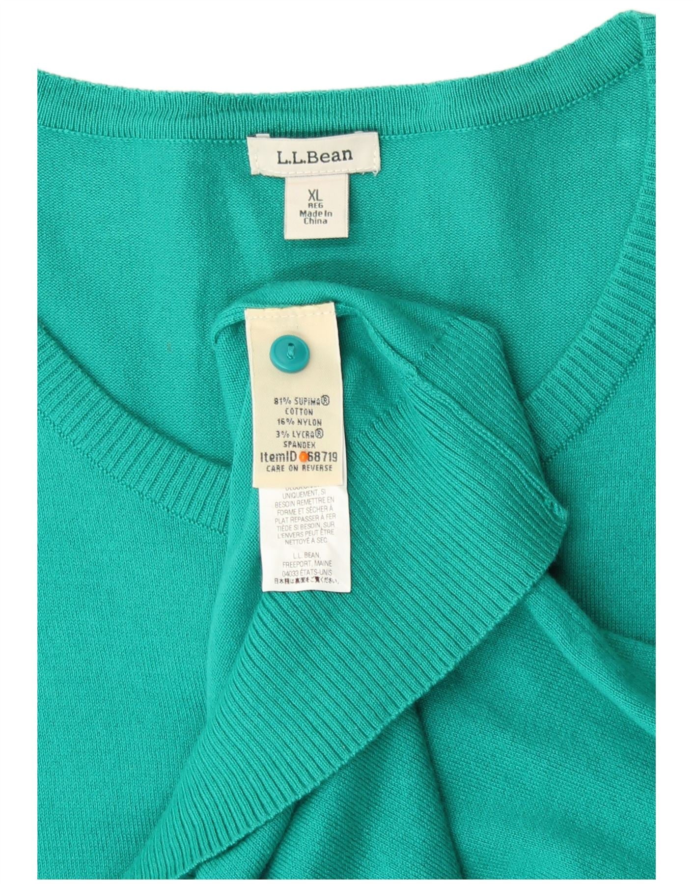 Pulover cardigan pentru femei L.L.BEAN UK 18 XL bumbac turcoaz