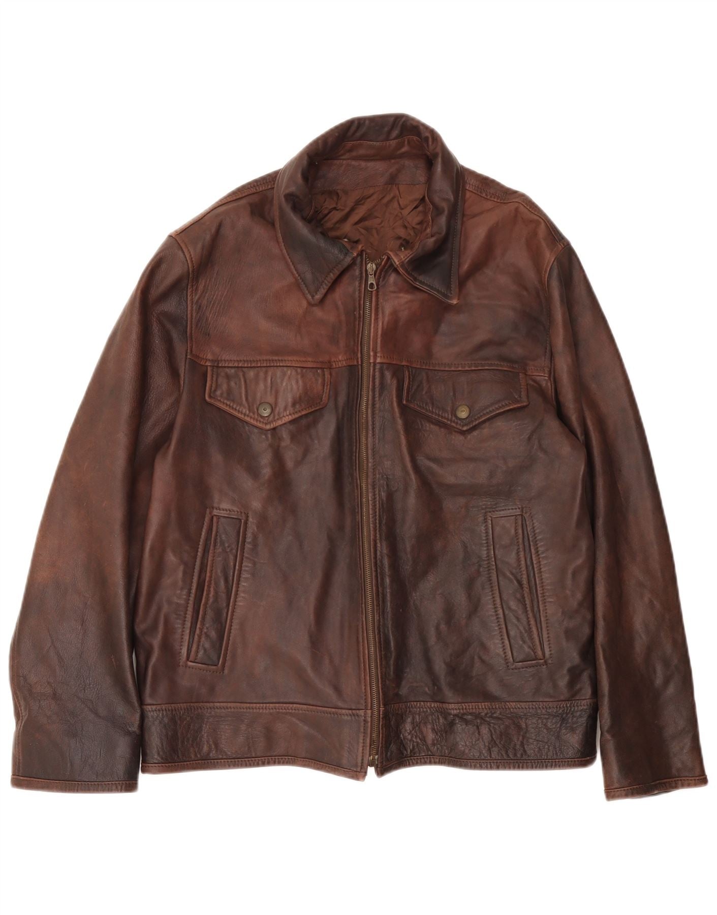L.LAMBERTAZZI Mens Leather Jacket IT 50 Large Brown Leather