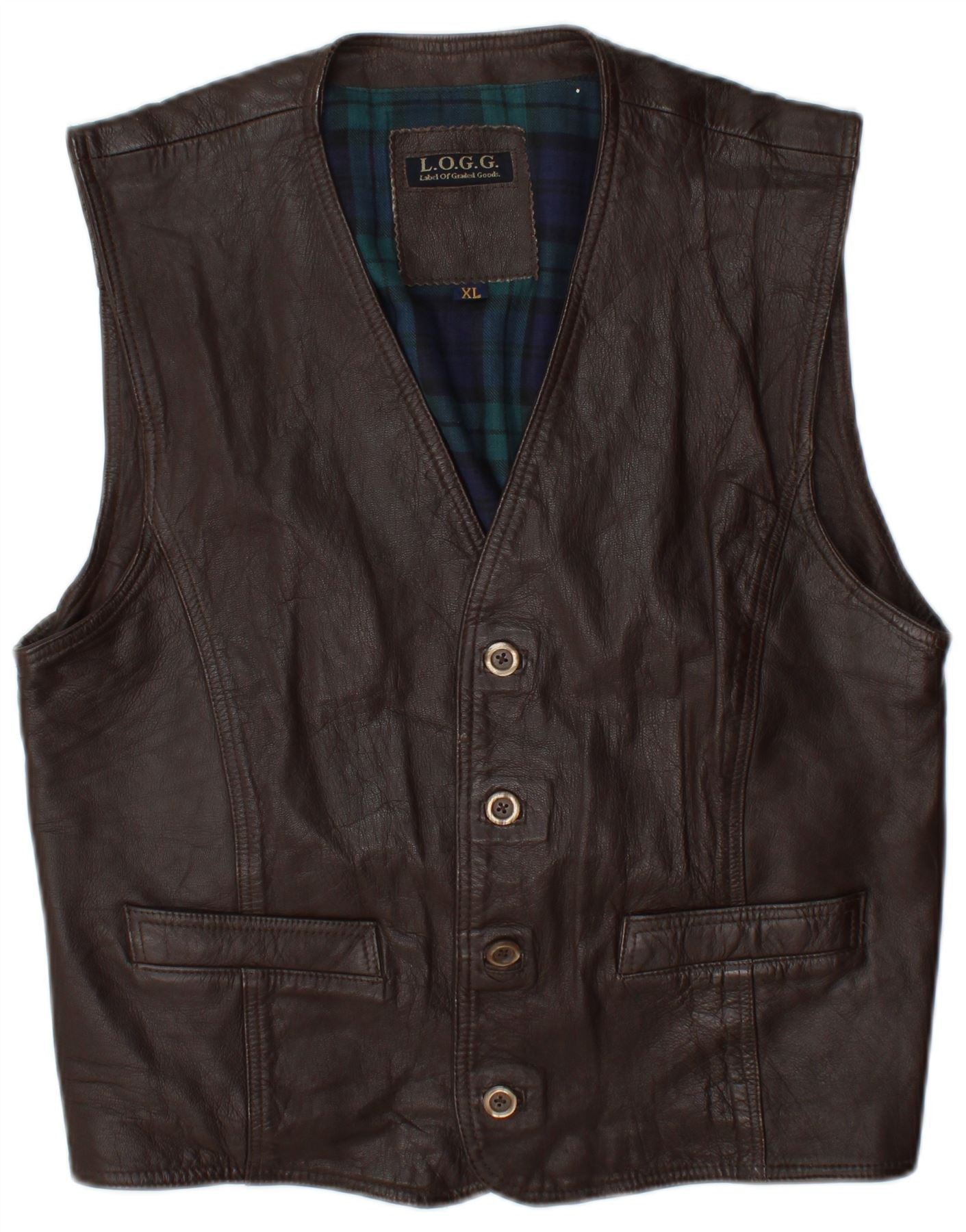 Vestă din piele pentru bărbați L.O.G.G, XL din piele maro cu check