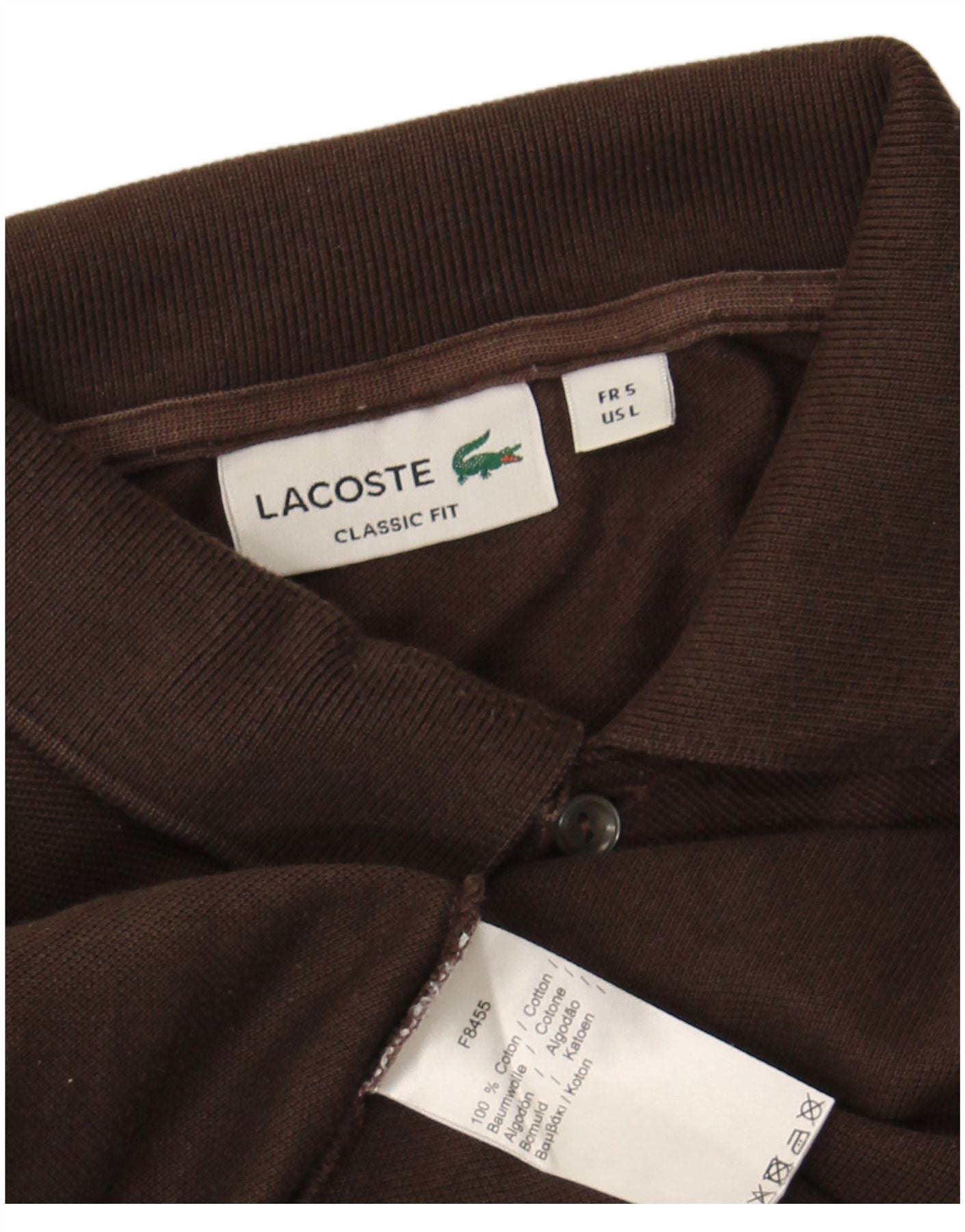 LACOSTE Mens Classic Fit Long Sleeve Polo Shirt Size 5 Large Brown Cotton