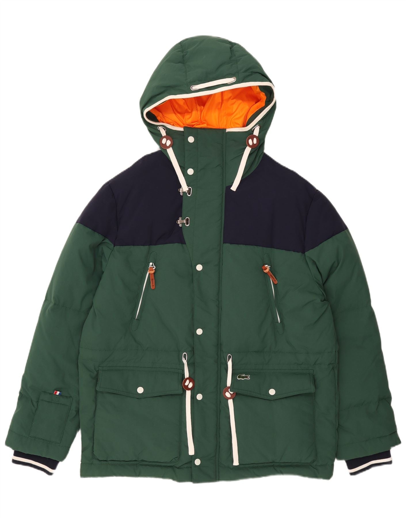 Jachetă căptușită cu glugă LACOSTE pentru bărbați IT 54 2XL verde poliamidă color bloc