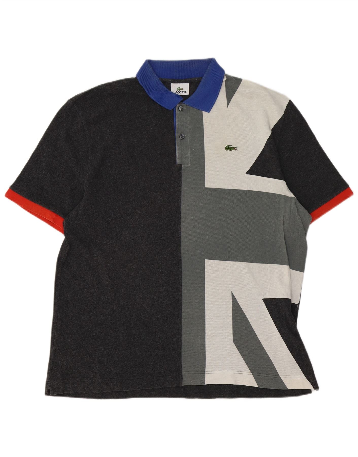 LACOSTE Mens Polo Shirt Size 7 2XL Grey Colourblock Cotton