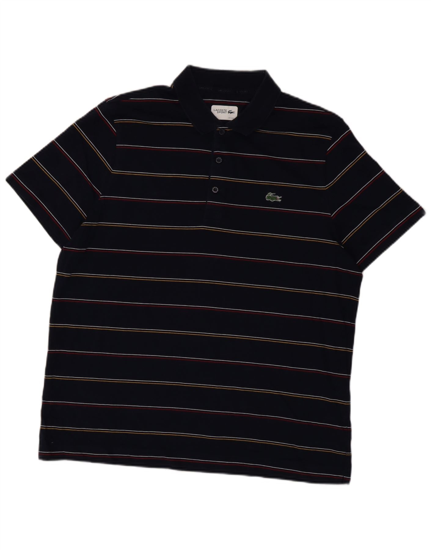 Tricou polo pentru bărbați LACOSTE Mărimea 7 2XL Bumbac cu dungi bleumarin