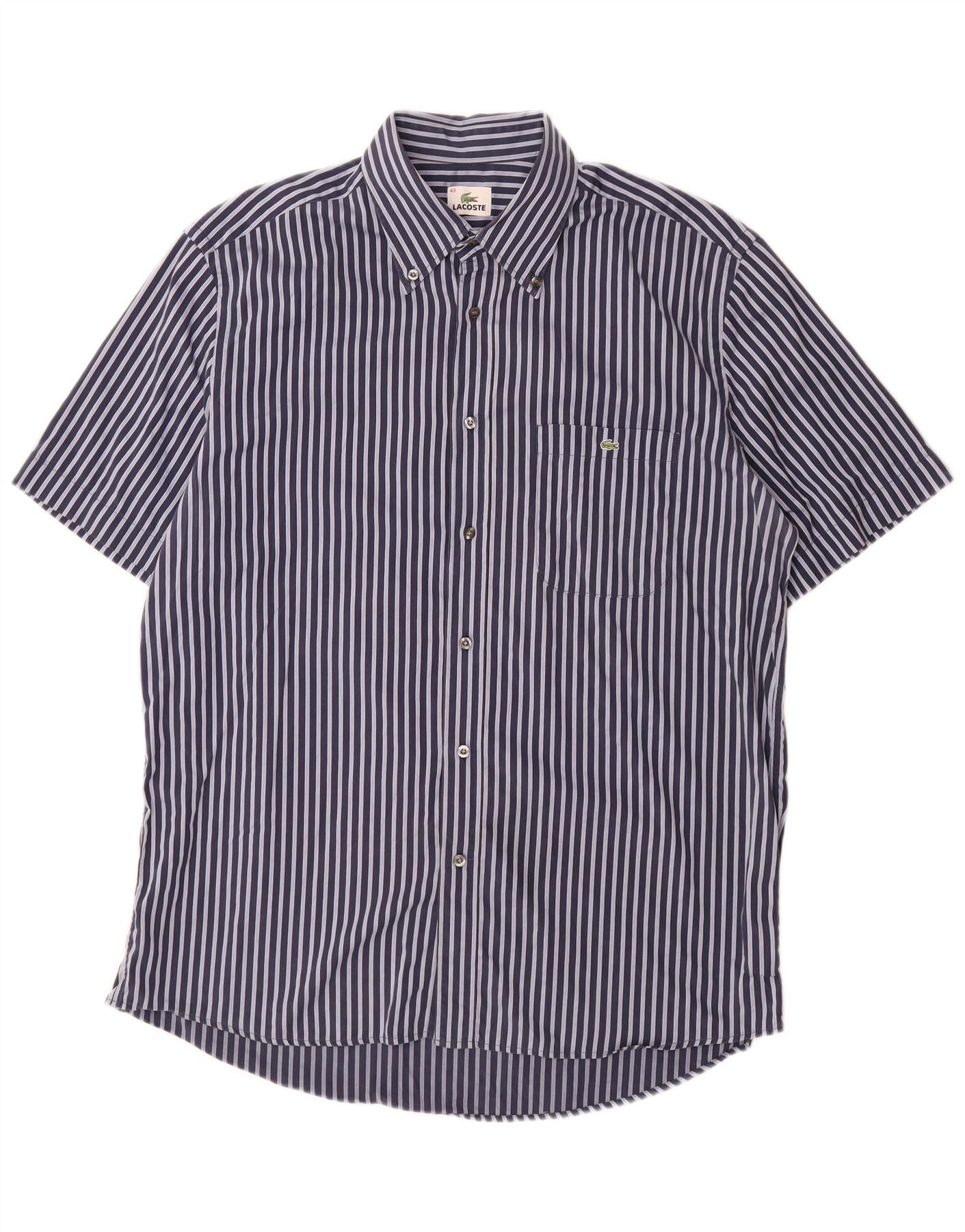 Cămașă cu mânecă scurtă pentru bărbați LACOSTE Mărimea 43 XL Bumbac cu dungi albastru bleumarin