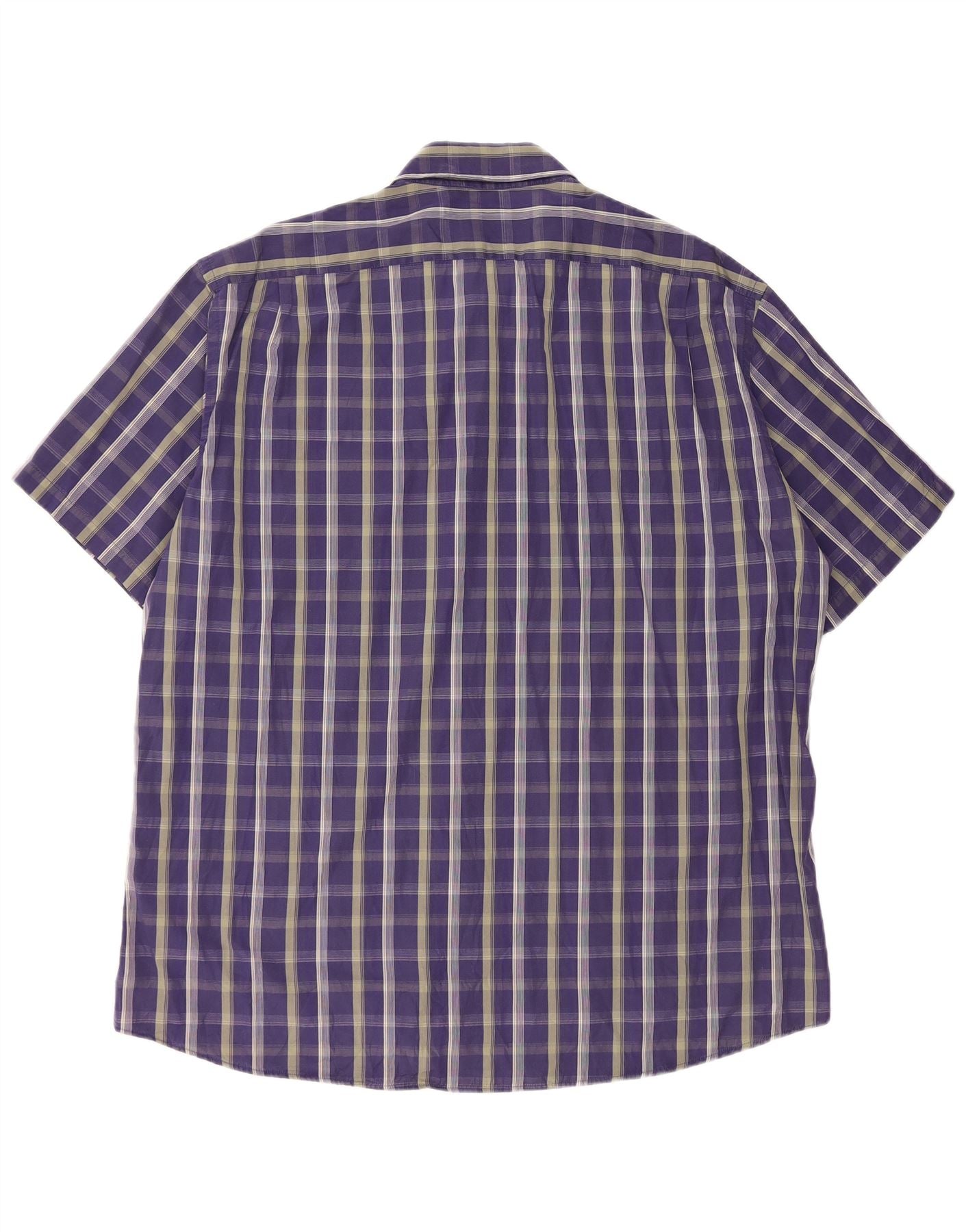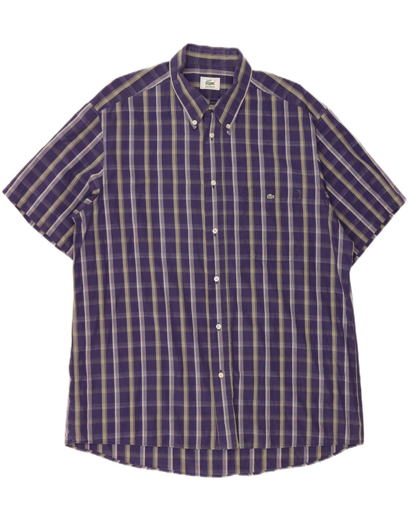 Cămașă cu mânecă scurtă pentru bărbați LACOSTE Mărimea 44 XL, bumbac cu carouri mov