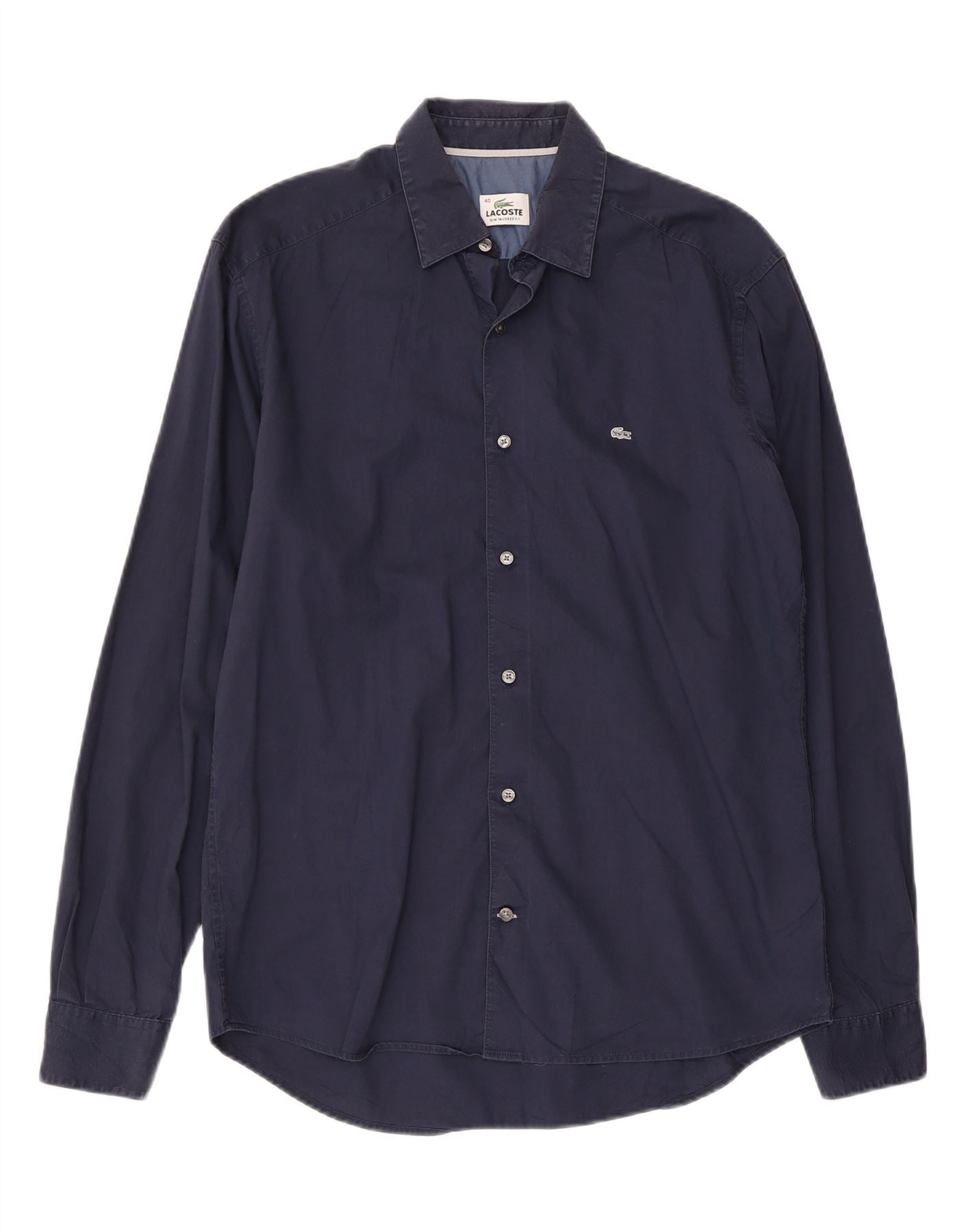 LACOSTE Mens Slim Tailored Fit Shirt Size 40 Medium Navy Blue Cotton