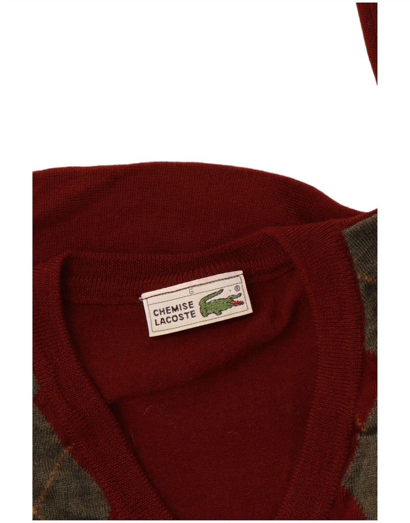 Pulover cu decolteu în V LACOSTE pentru bărbați, mărimea 6 XL, roșu Argyle/Diamond