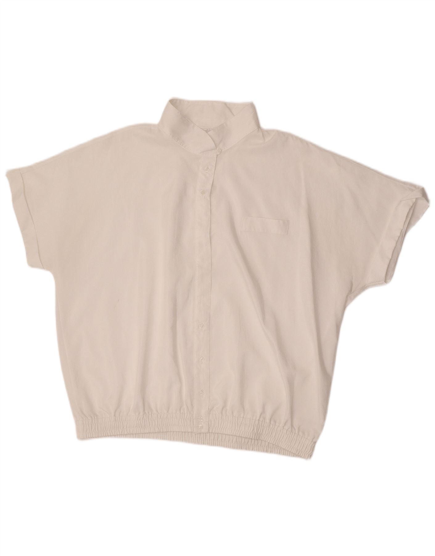 - Descriere AI: Această bluză de cămașă pentru femei Lady Joy este realizată din poliester țesut alb. Are un decolteu clasic cu guler și un nasturi în față. Mânecile scurte oferă o siluetă relaxată. Corpul lejer se adună în talie elastică pentru o draperie confortabilă. Un singur buzunar la piept adaugă o notă practică. Nasturii tonali completează designul curat, minimalist.