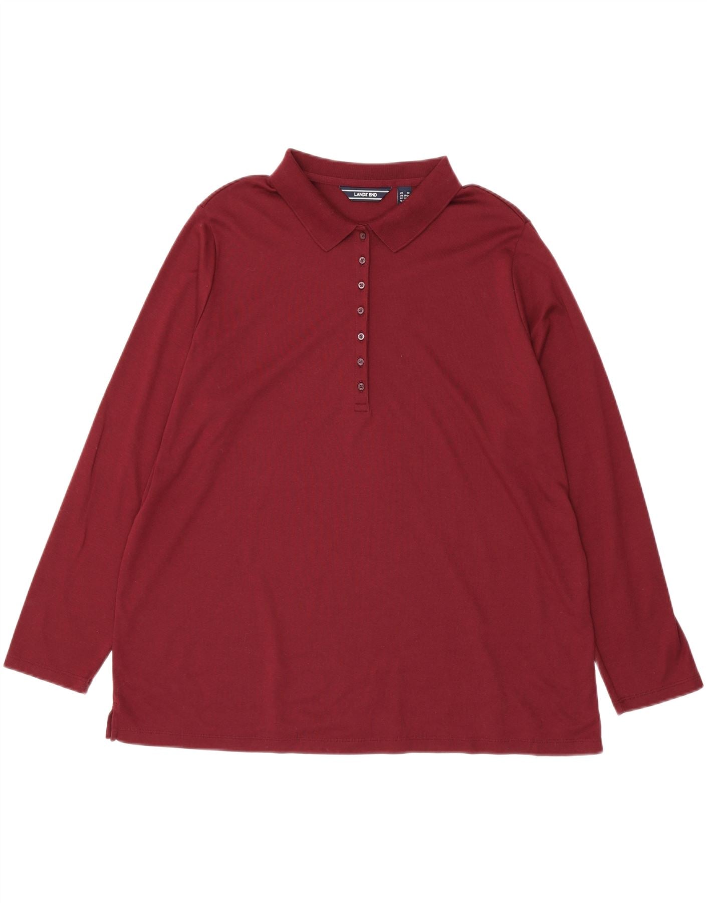 LANDS END tricou polo cu mânecă lungă pentru femei Marea Britanie 24/26 2XL bumbac burgundă