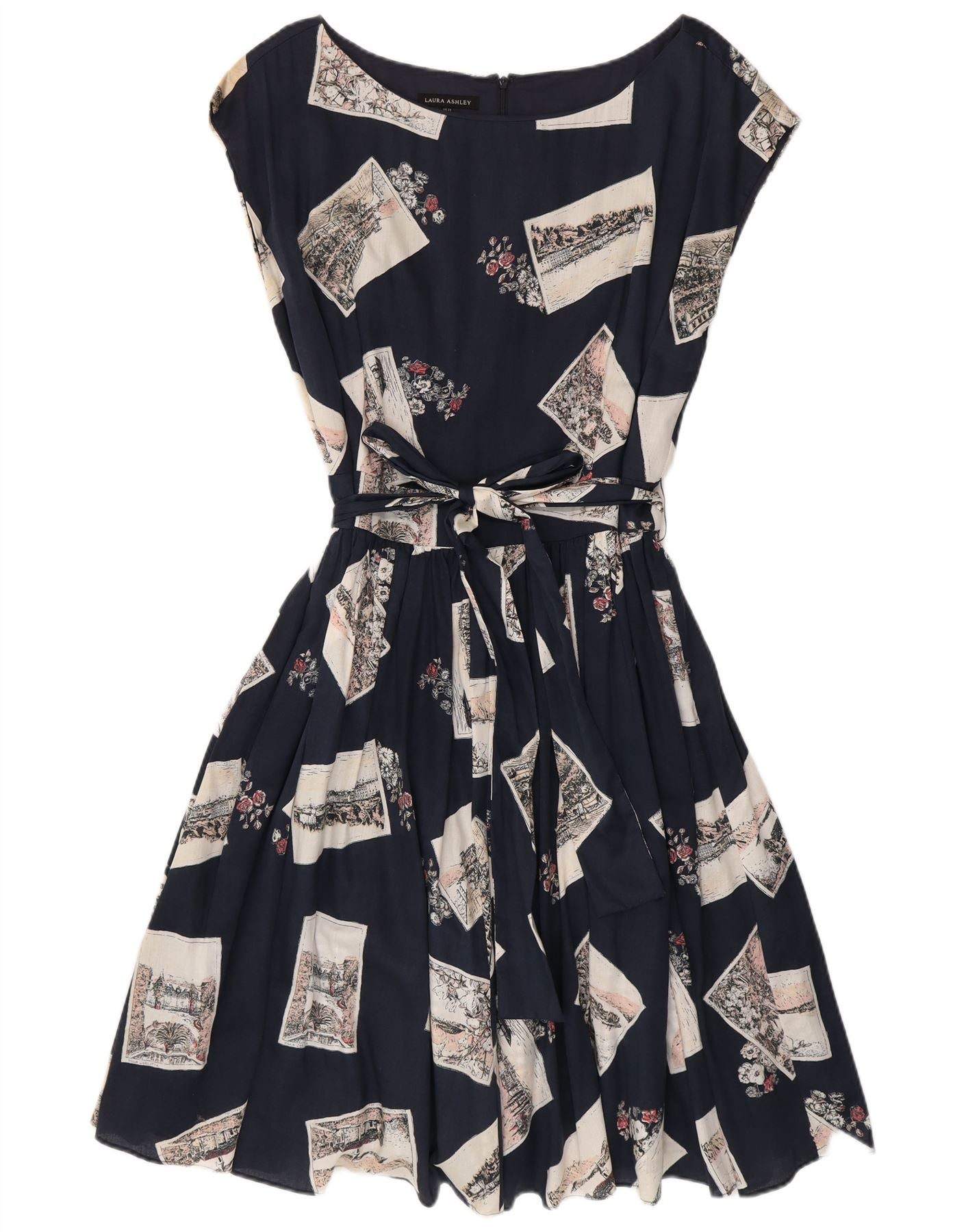 LAURA ASHLEY Womens A-Line Dress UK 20 2XL Navy Blue Patchwork Cotton