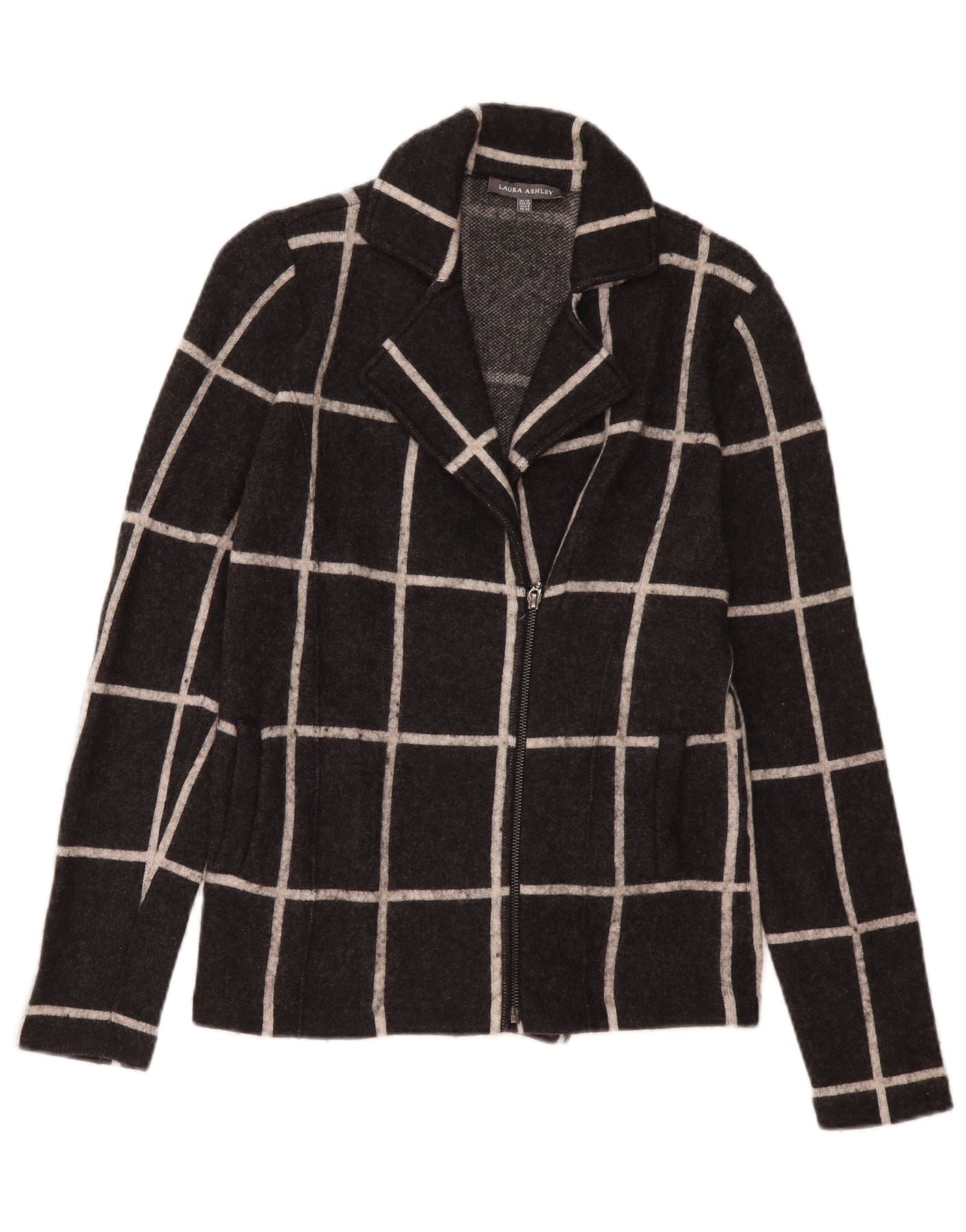 LAURA ASHLEY Womens Blazer Jacket UK 12 Medium Grey Check Nylon