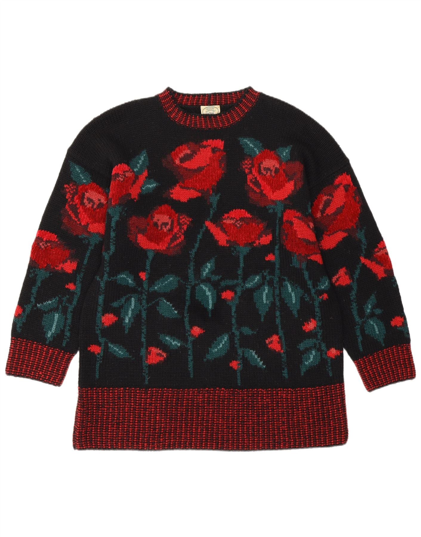 LAURA ASHLEY Pulover pentru femei cu decolteu rotund UK 14 Medium Black Floral