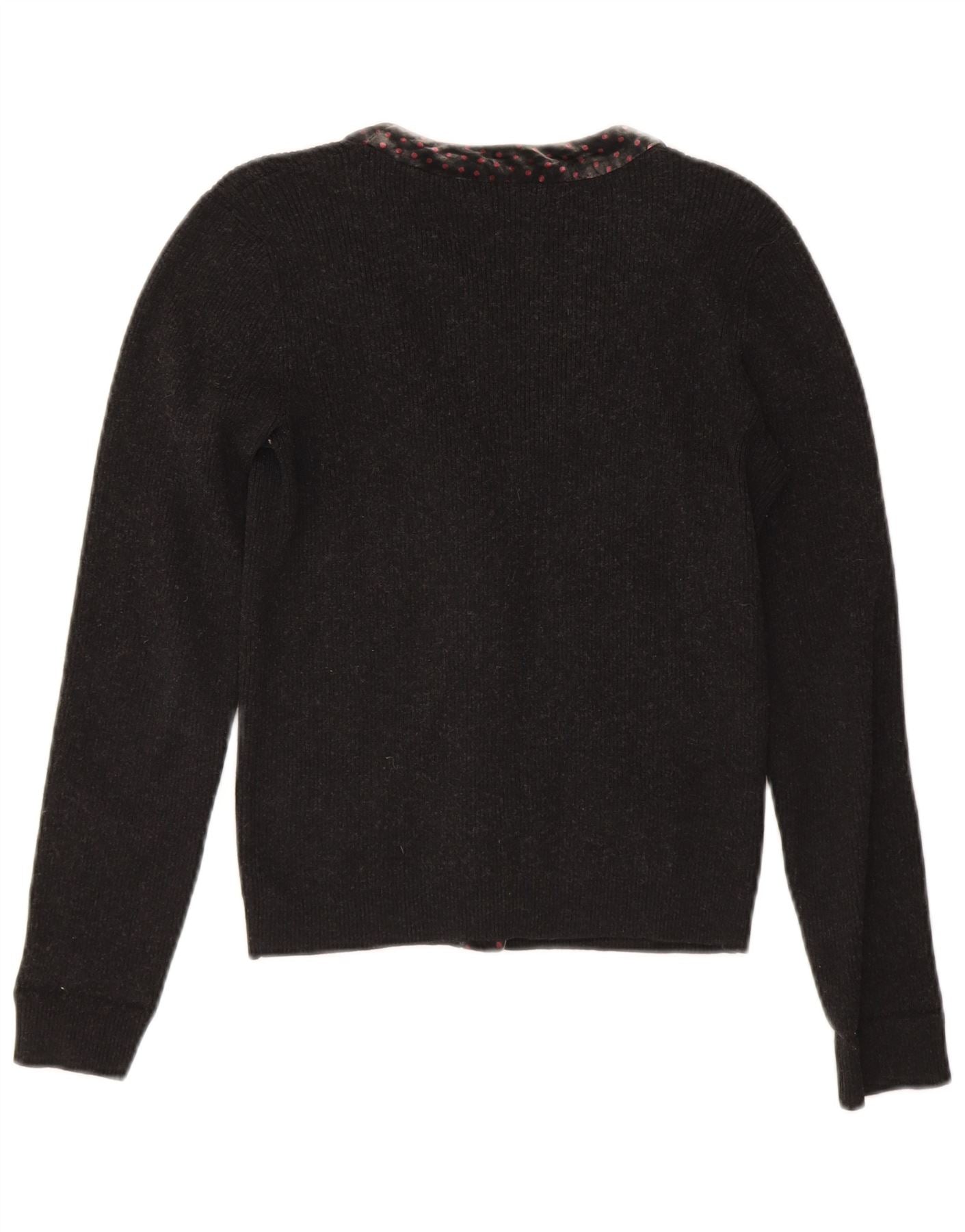 LAURA ASHLEY Womens Crop Cardigan Sweater UK 10 Small Grey Spotted Cotton