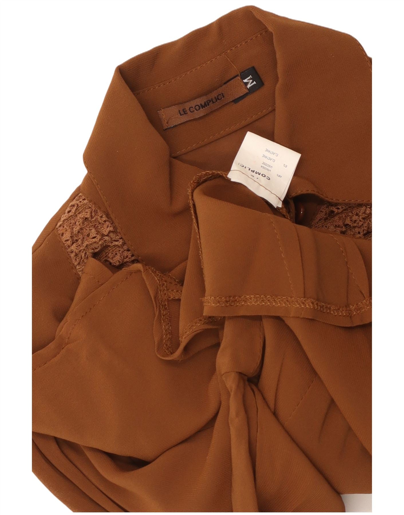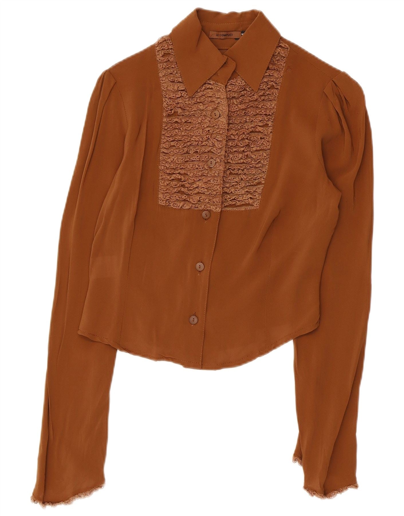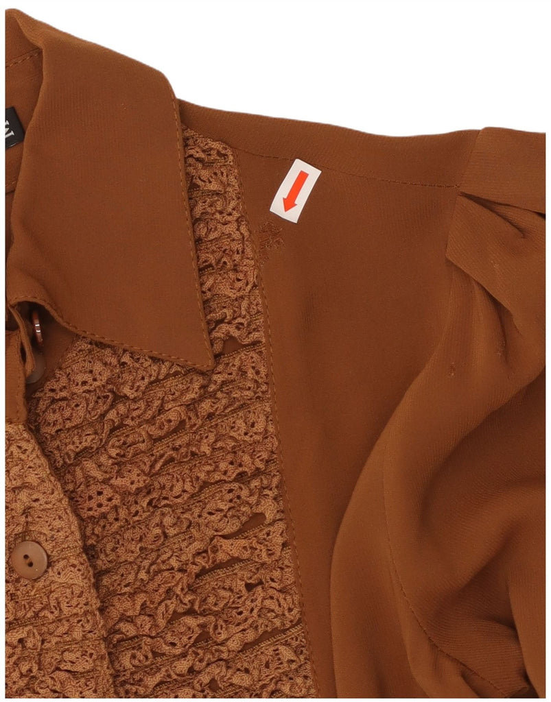 LE COMPLICI Womens Crop Shirt Blouse UK 12 Medium Brown Viscose