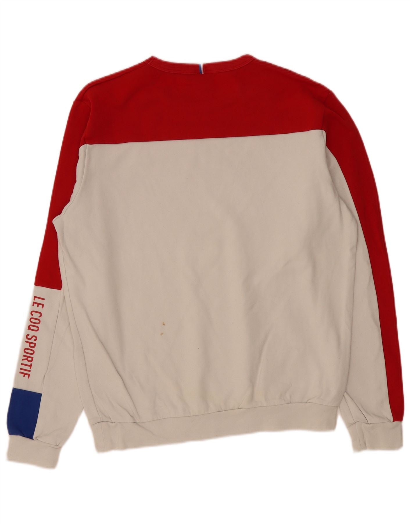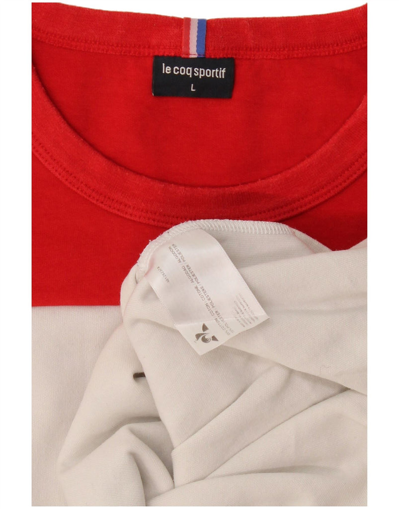 LE COQ SPORTIF Mens Graphic Sweatshirt Jumper Large Red Colourblock Cotton