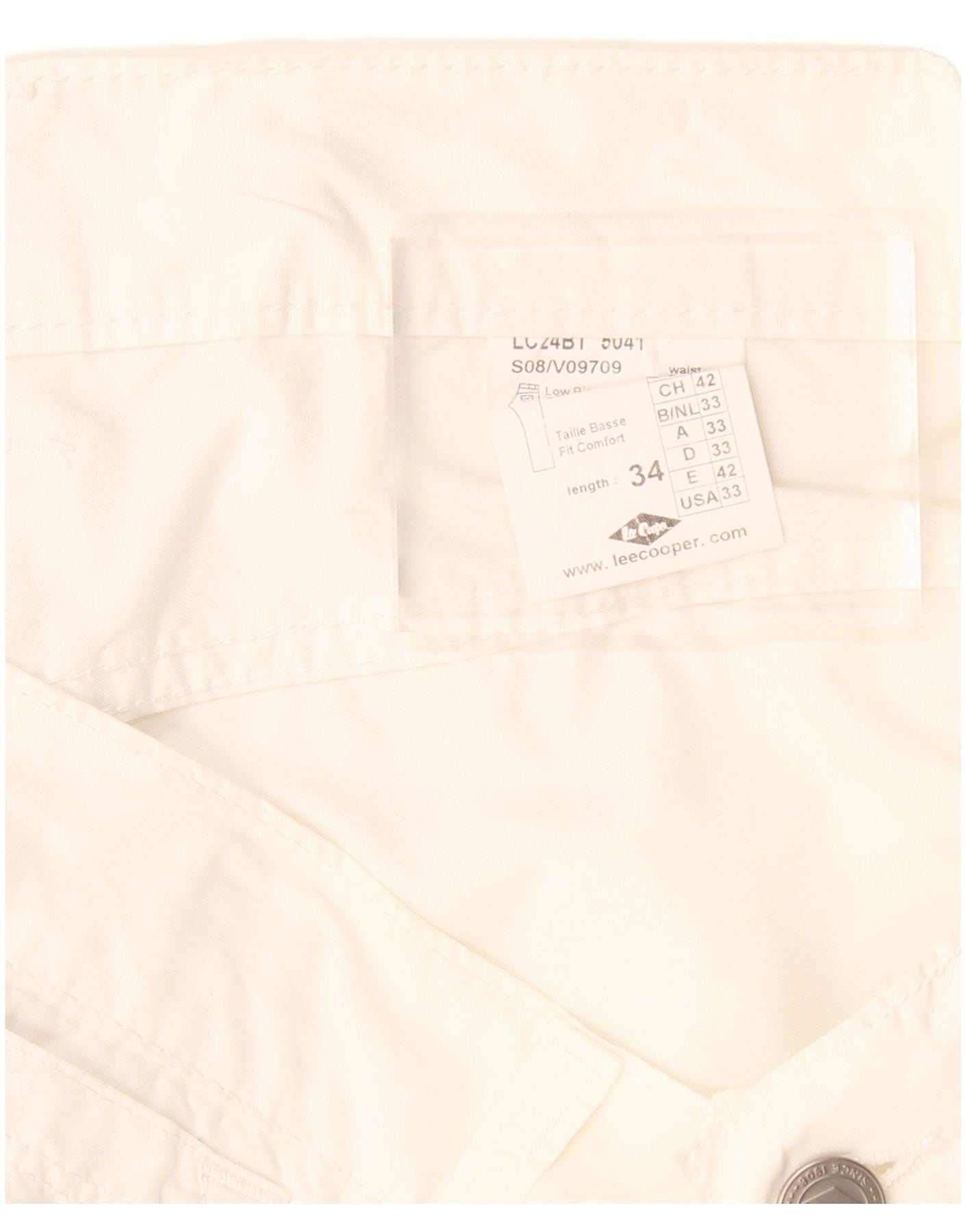 LEE COOPER Womens Straight Casual Trousers W33 L33 White Cotton
