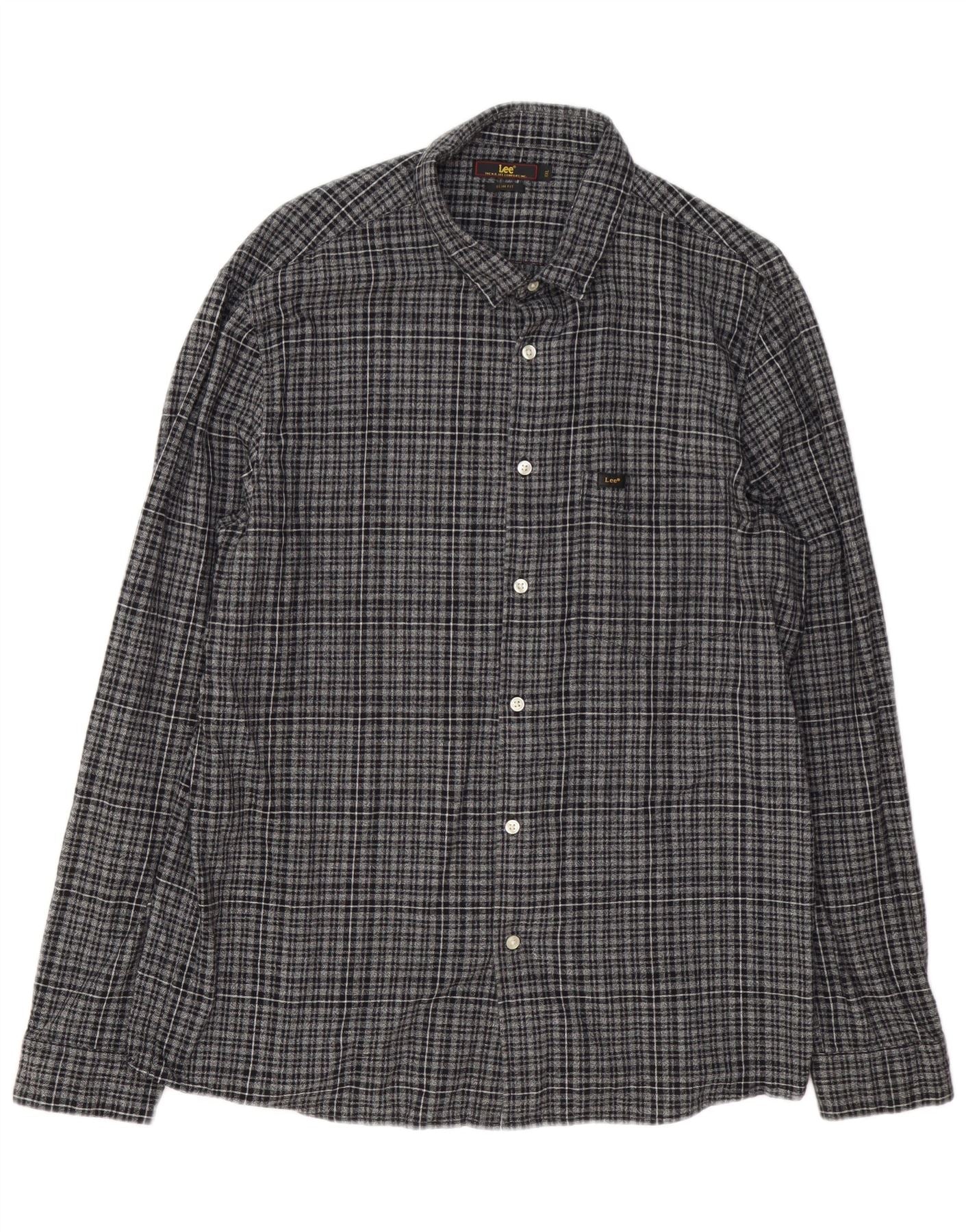 - Descriere AI: Această cămașă de flanel pentru bărbați Lee este confecționată din flanel moale 100% bumbac. Are un model clasic de check negru și gri. Decolteul cu guler și fața cu nasturi complet oferă un aspect atemporal. Mânecile lungi cu manșete cu nasturi și o croială subțire creează o siluetă croită. Un singur buzunar la piept adaugă detalii practice. Această cămașă combină confortul cu stilul casual inteligent.