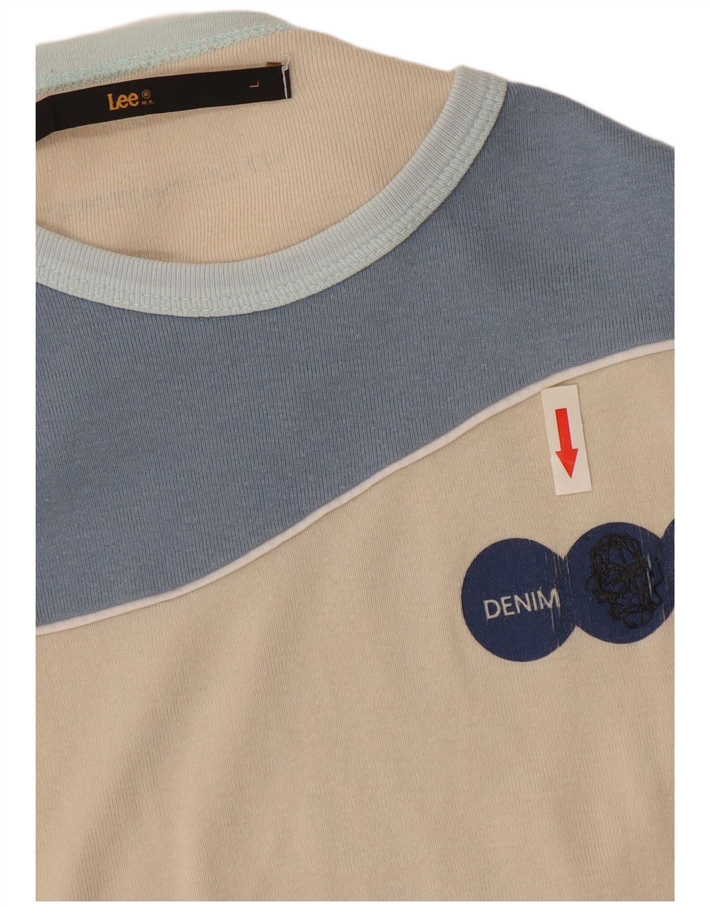 - Descriere AI: Acest top cu tricou grafic pentru femei Lee este realizat din țesătură moale din jerseu. Are un gât rotund clasic și mâneci scurte cu mansete. Potrivirea obișnuită asigură o purtare confortabilă. Un design distinctiv de blocuri de culoare în bej și albastru creează o estetică retro. Partea frontală prezintă un accent subtil de logo. Acest stil de pulover oferă un aspect relaxat, dar elegant.