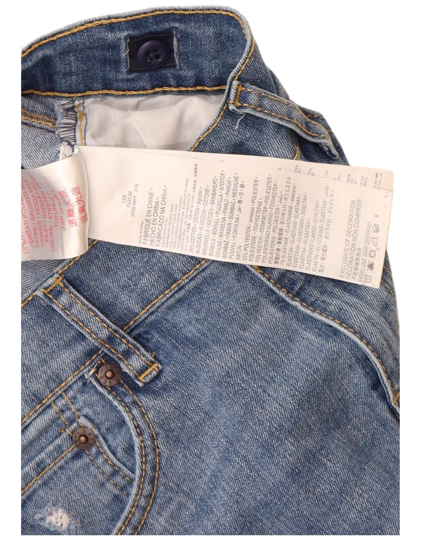 LEVI'S Boys 511 Distressed Slim Jeans 11-12 Years W26 L28 Blue Cotton