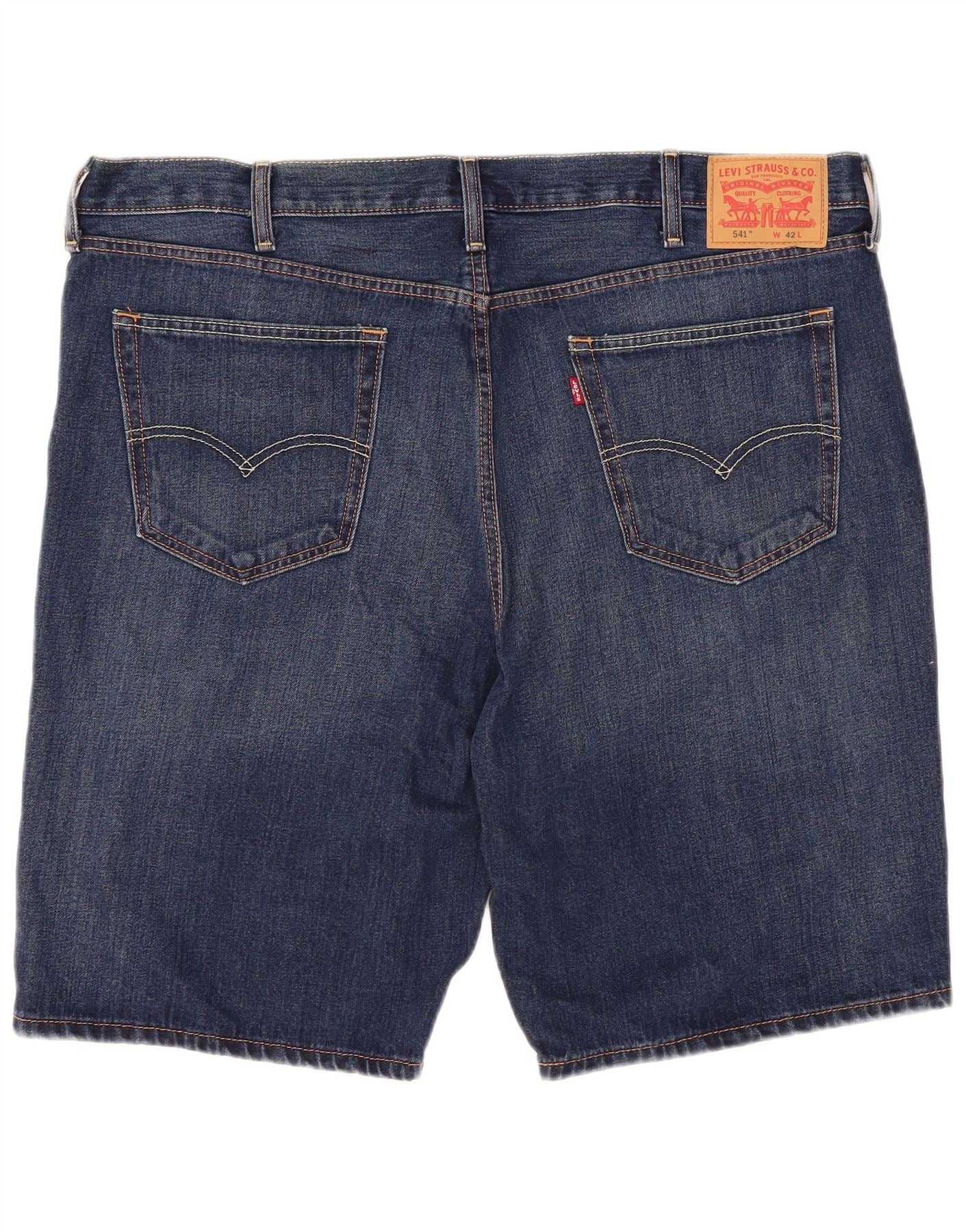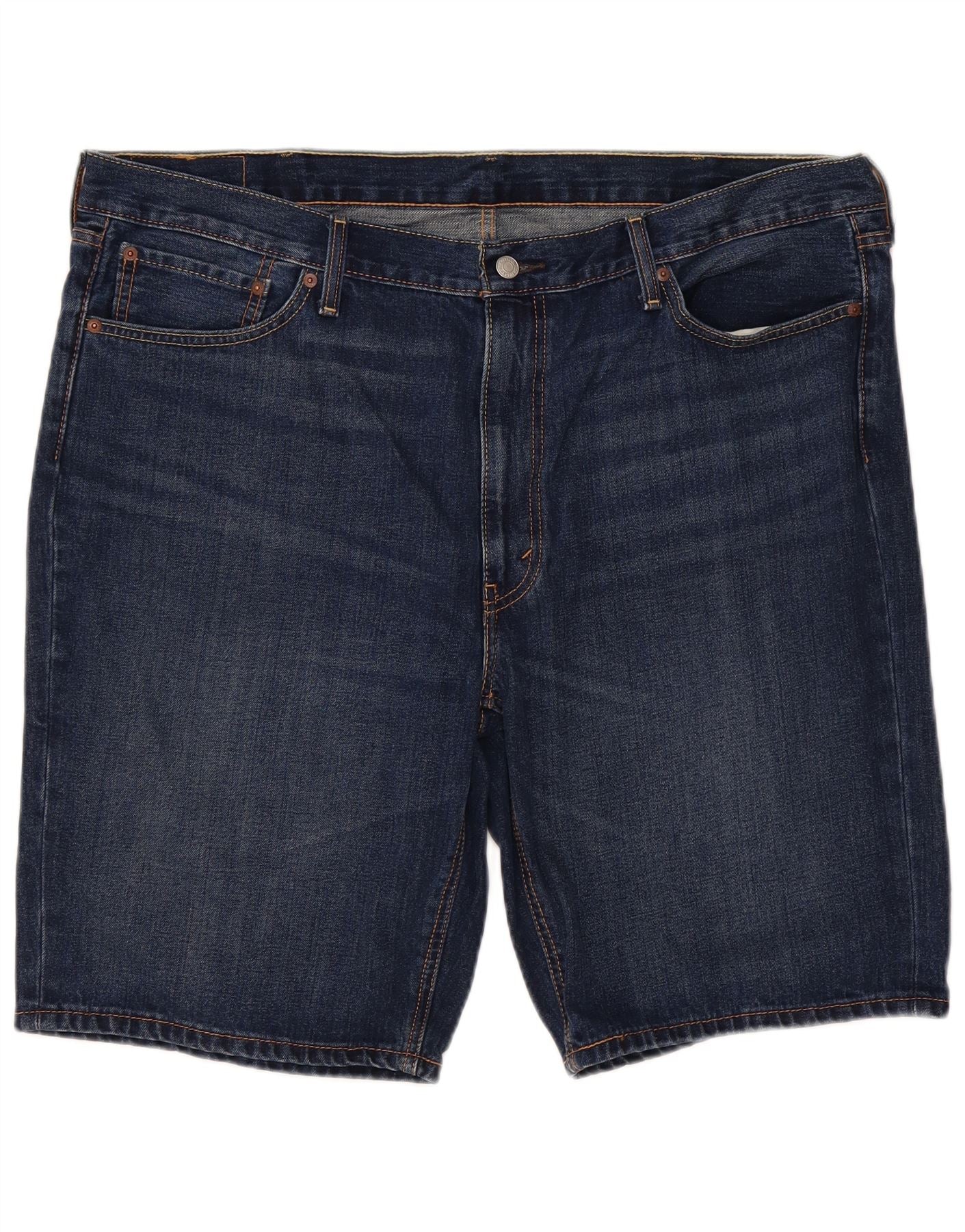 - AI Description: This Levi's mens Denim Shorts are crafted from durable blue denim. They feature a classic regular fit and a secure button closure. Practical pockets offer essential functionality. A subtle logo accent completes the timeless design. These shorts provide a comfortable and versatile option for everyday casual wear, embodying classic style.