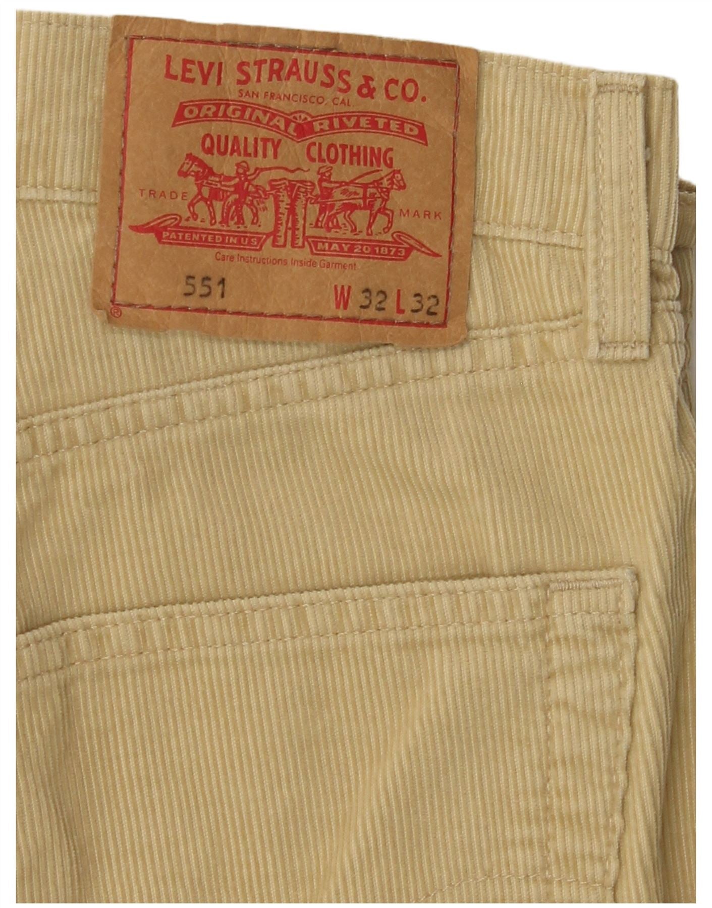 Pantaloni LEVI'S 551 loose fit, din velur, bumbac bej, W32 L32
