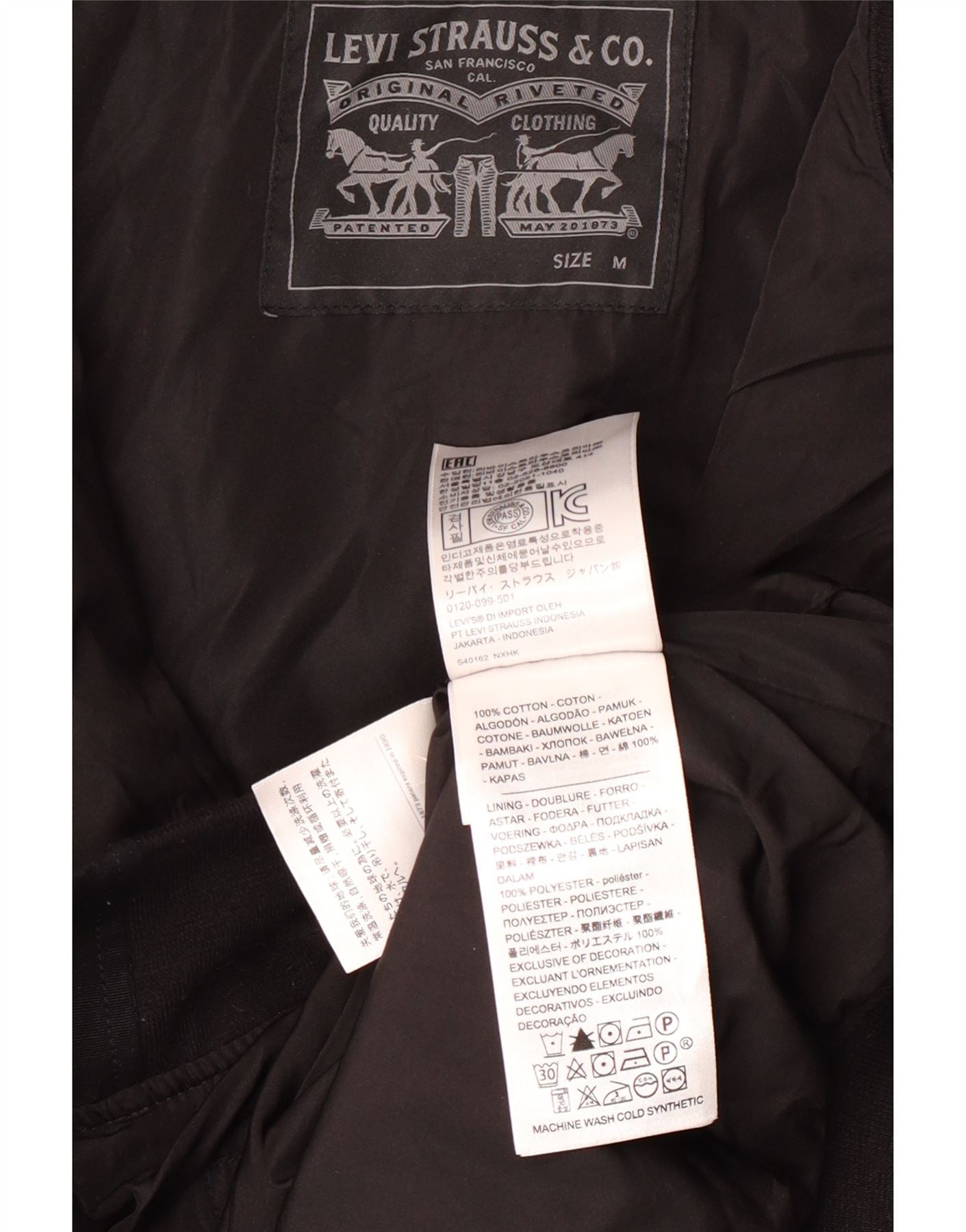 Jachetă bomber pentru bărbați LEVI'S UK 38, bumbac mediu negru