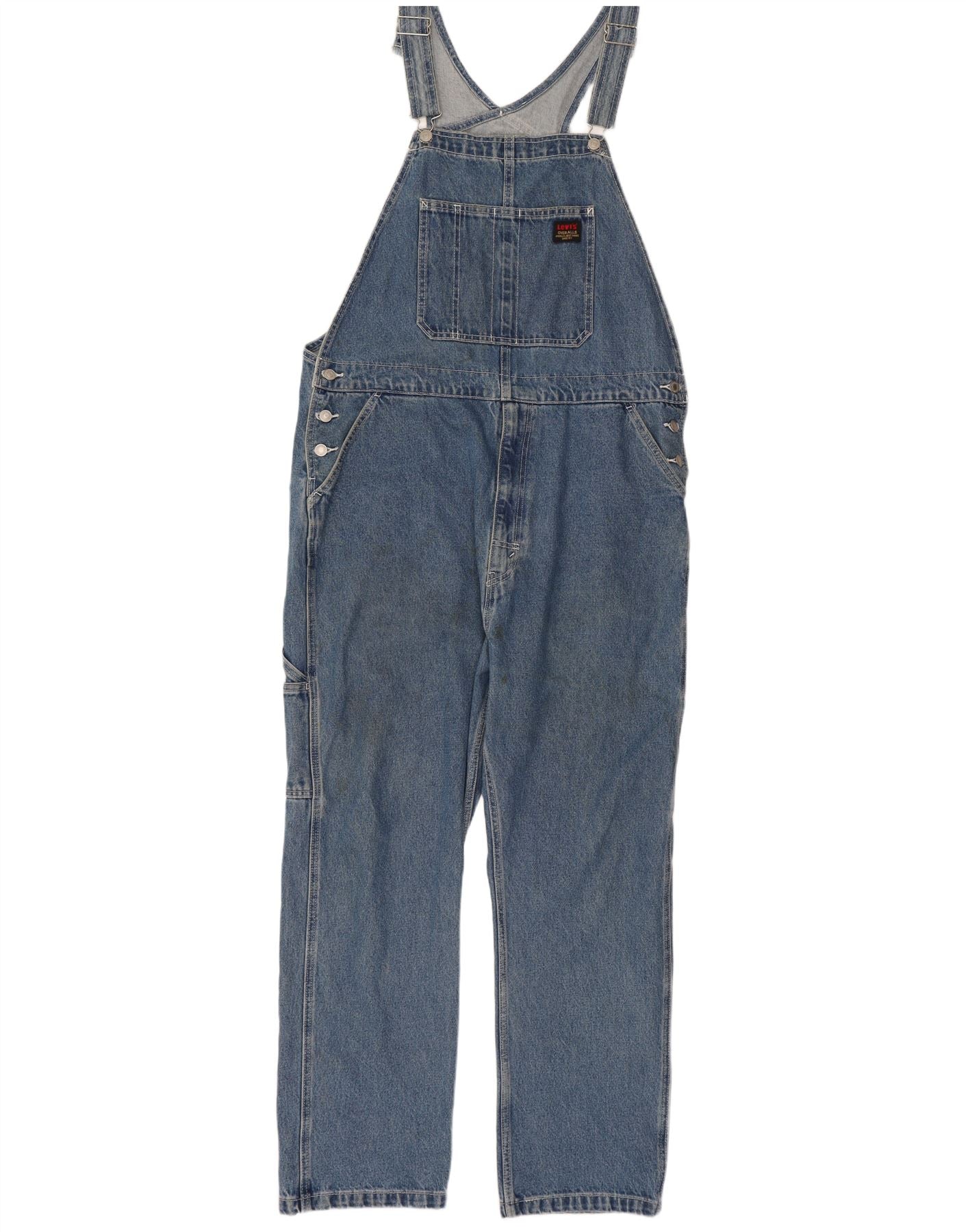 - AI Description: This Levi's mens jeans are crafted from durable blue cotton denim. They feature a relaxed, loose fit for ultimate comfort and freedom of movement. The classic straight leg design offers a timeless silhouette. Practical pockets provide ample storage. A button fly closure and button accents complete the traditional styling.