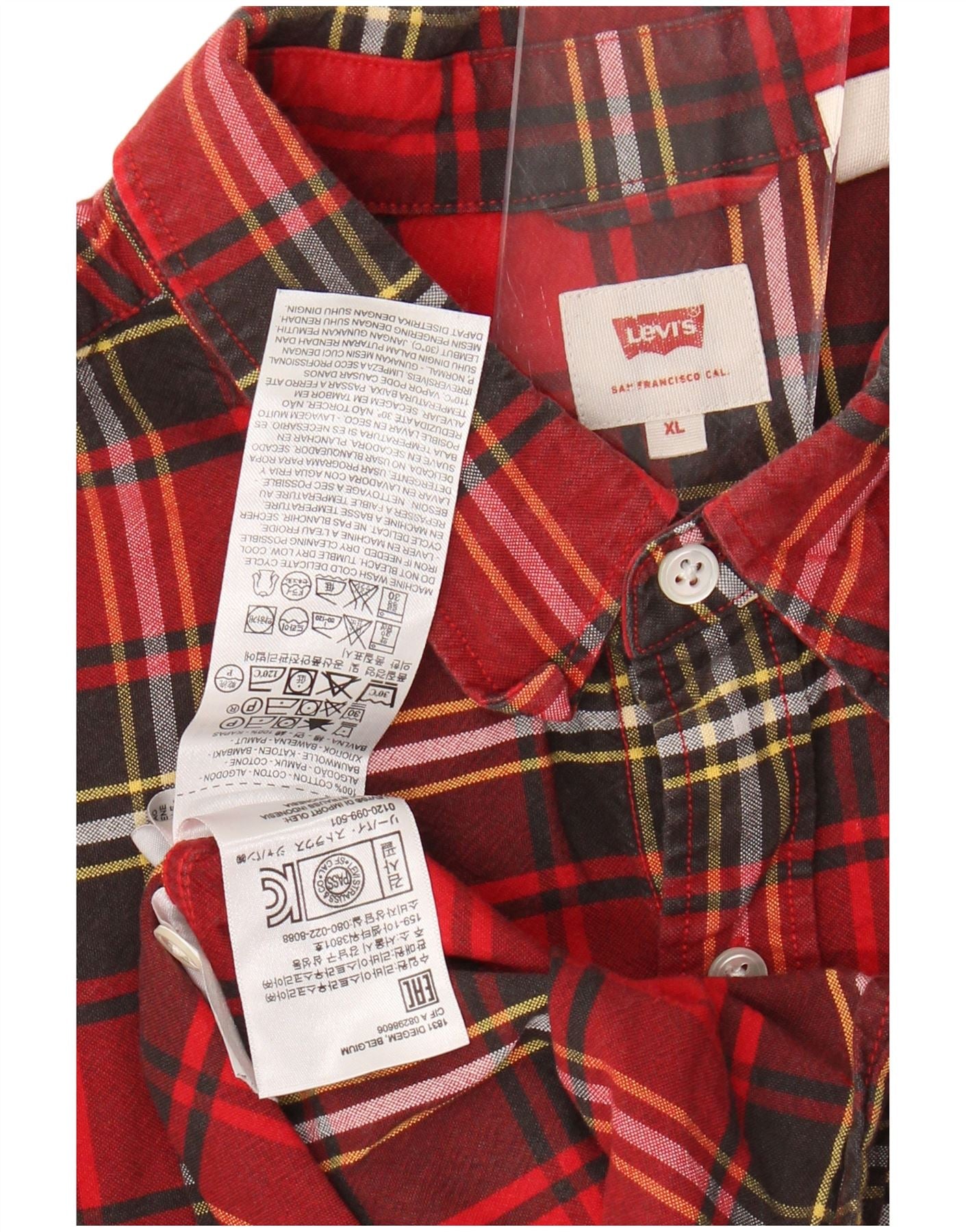 Cămașă de flanel pentru bărbați LEVI'S, bumbac roșu cu carouri XL