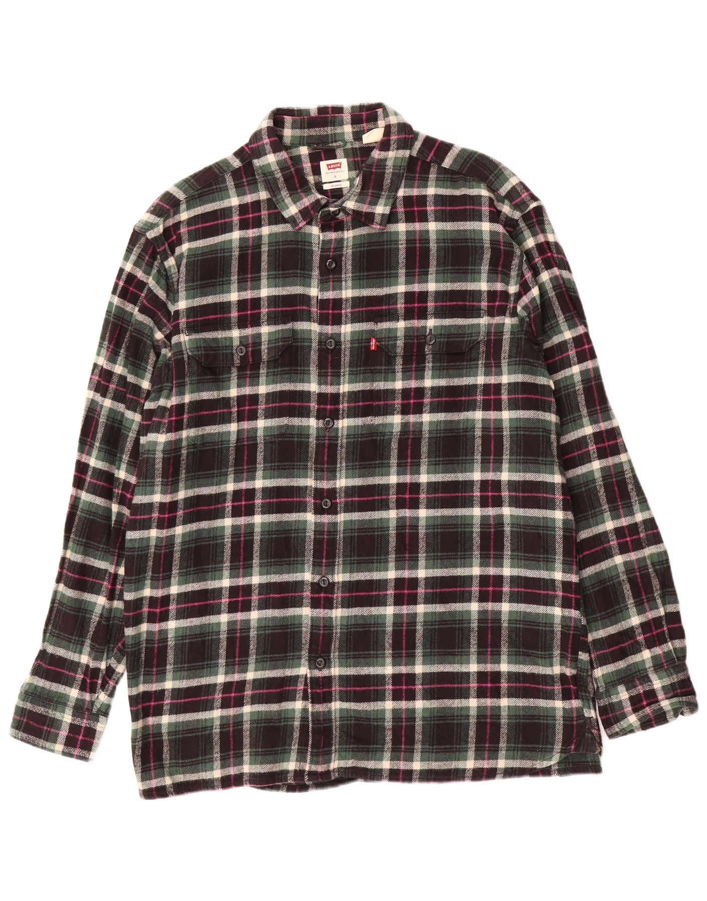 - Descriere AI: Această cămașă de flanel pentru bărbați Levis este confecționată din flanel moale 100% bumbac. Are un decolteu clasic cu guler și o față cu nasturi complet. Potrivirea relaxată asigură o purtare confortabilă. Mânecile lungi se finisează cu manșete îngrijite cu nasturi. Un model de carouri distinctiv în negru, verde, alb și roz adaugă interes vizual. Două buzunare la piept oferă detalii practice. Această cămașă oferă un stil atemporal, casual.