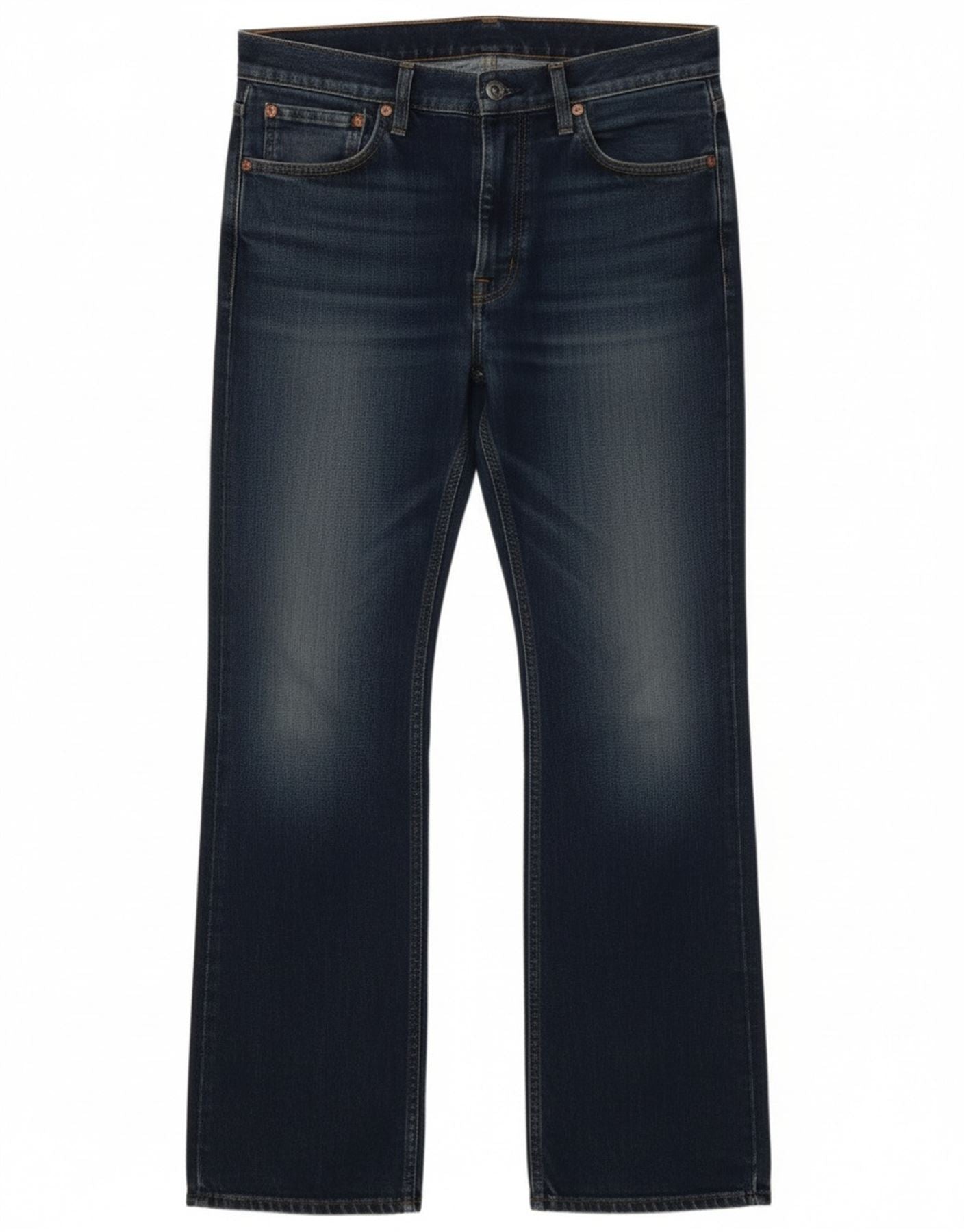 - Descriere AI: Acesti blugi Levis Bootcut pentru barbati sunt confectionati din denim albastru, cu un finisaj invechit. Potrivirea obișnuită și piciorul bootcut oferă o siluetă clasică. Închiderea cu fermoar asigură o potrivire sigură. Buzunarele funcționale oferă caracter practic. Logo-ul emblematic Levis accentuează designul, adăugând o notă de semnătură. Acești blugi 507 combină confortul cu un stil atemporal, robust.