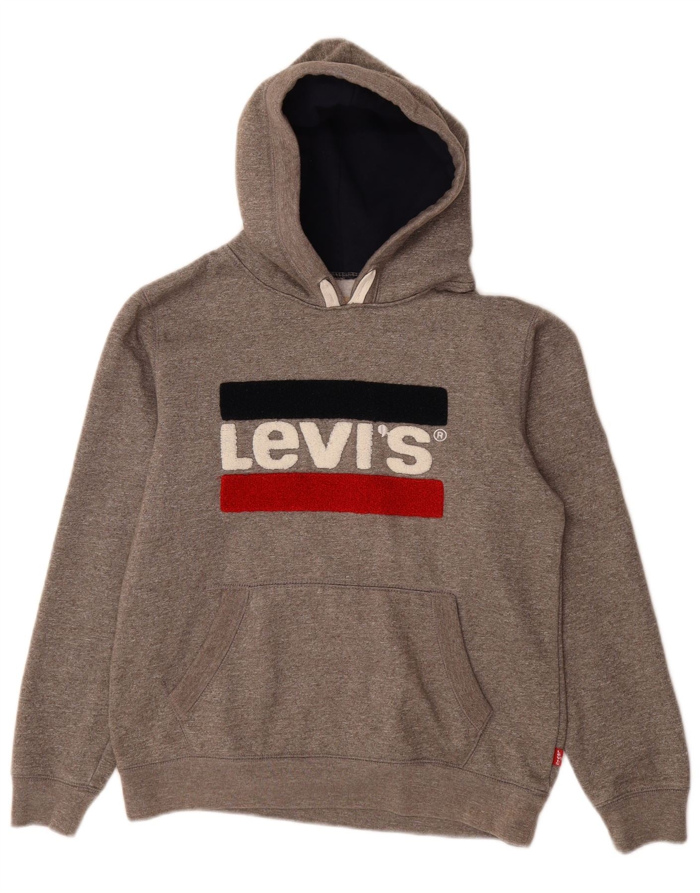 Pulover cu glugă cu grafică LEVI'S pentru femei UK 16 mare bumbac cu pete gri