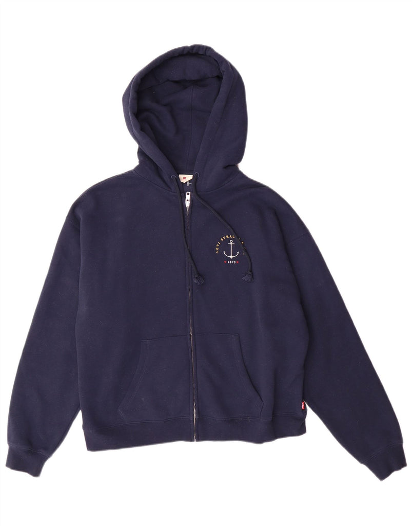 Levi'S Pulover supradimensionat cu capota cu fermoar grafic pentru femei UK 10 Mic bleumarin