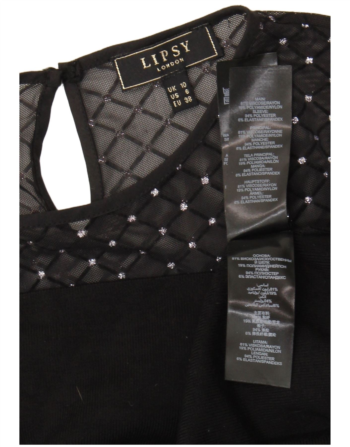 Bluză cu mânecă lungă pentru femei Lipsy Top UK 10 Small Black Viscose