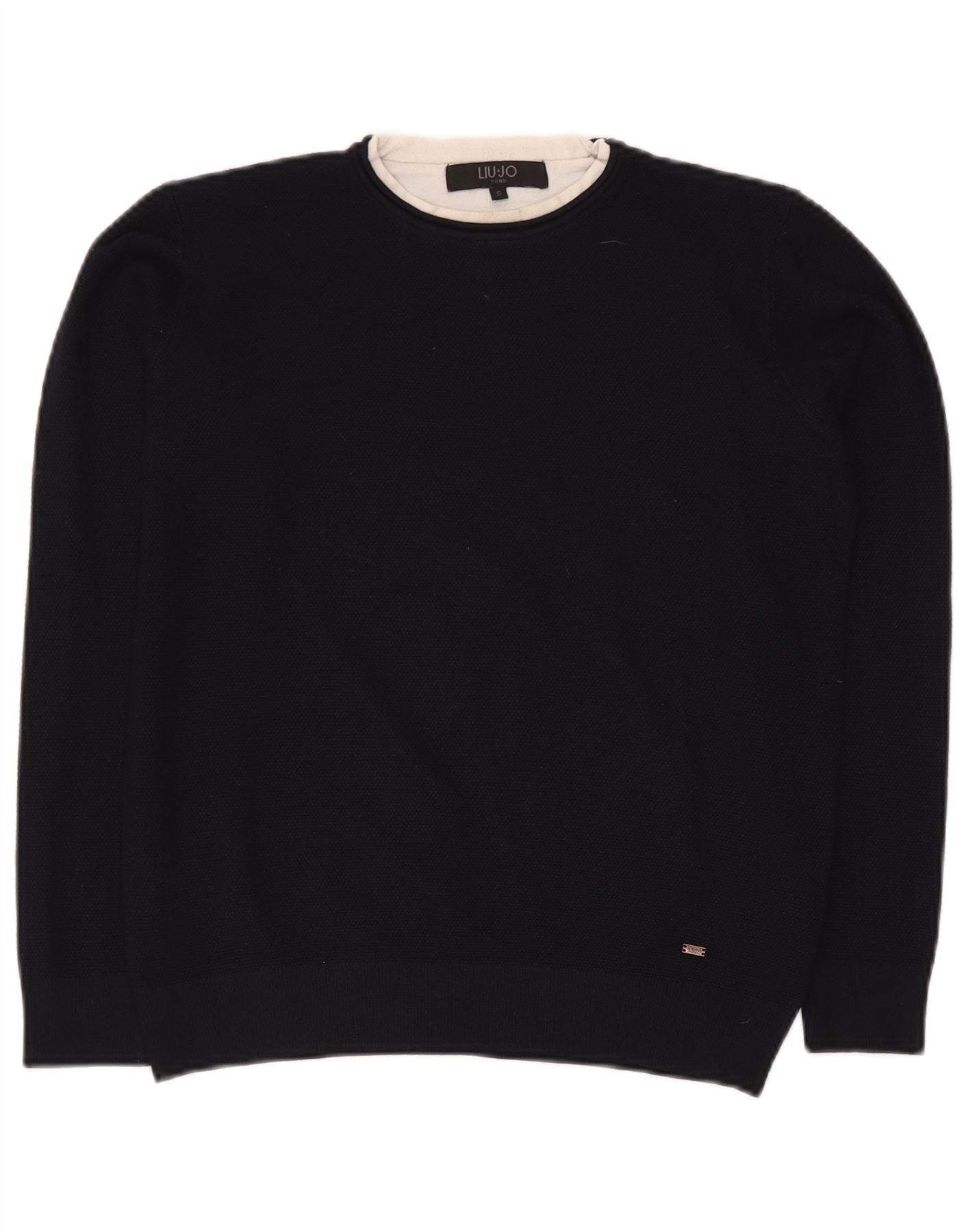 - Descriere AI: Acest pulover pentru femei Liu Jo cu gât roșu este confecționat dintr-o țesătură neagră amestecată moale, cu 80% viscoză pentru confort. Decolteul rotund clasic și mânecile lungi oferă o siluetă atemporală. Are o potrivire regulata, asigurand usurinta la purtare. Un detaliu subtil de logo adaugă o notă rafinată acestui design versatil de pulover.