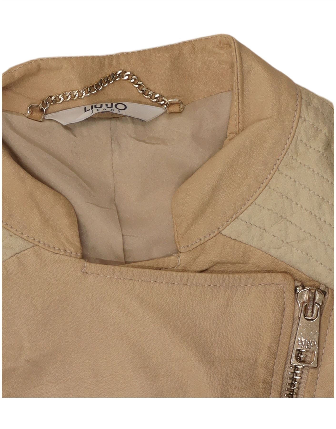 Jachetă de motociclist crop pentru femei Liu Jo IT 42 Medium Beige Colorblock Piele