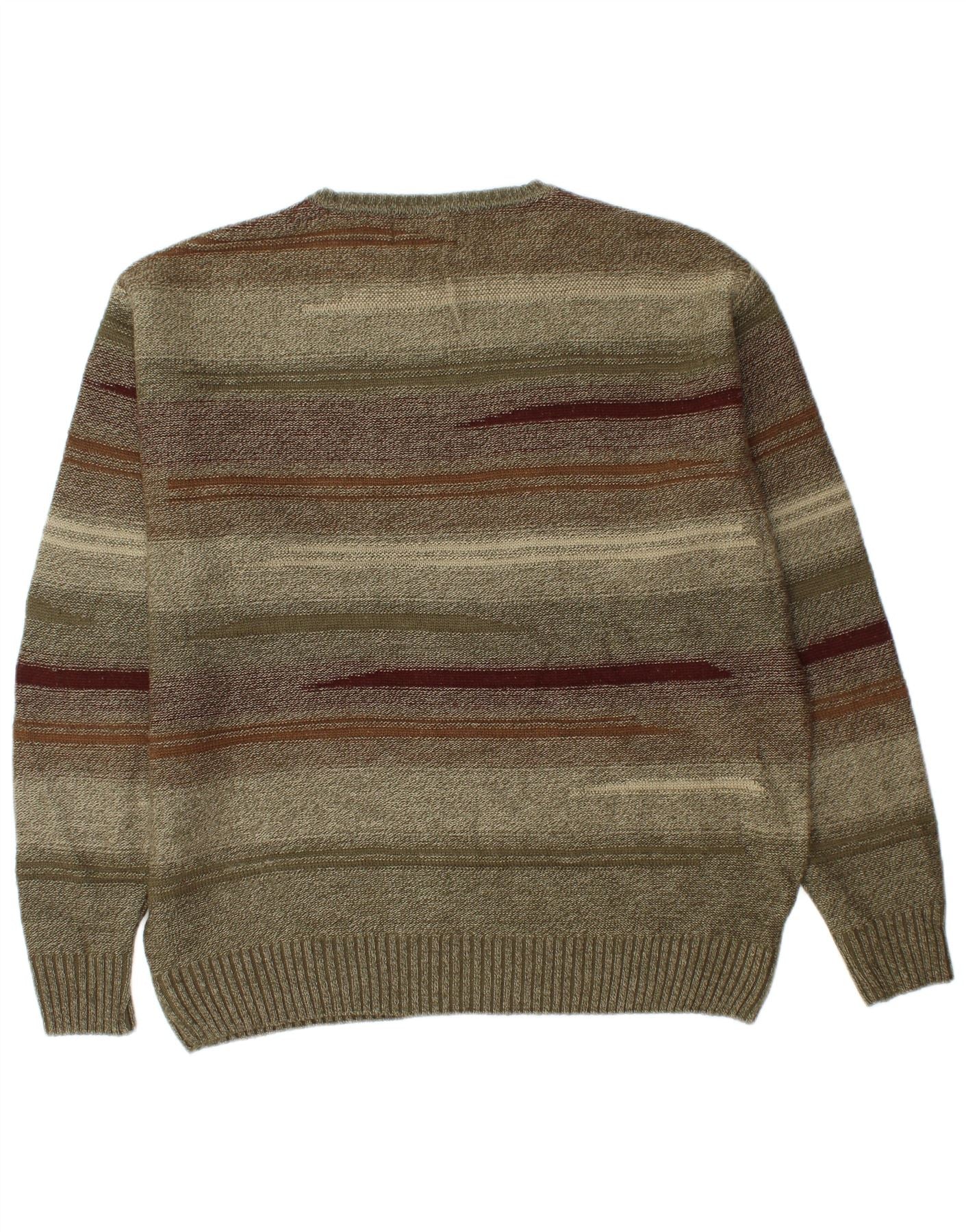 LONDON FOG Pulover pentru bărbați cu decolteu rotund, mediu kaki, cu dungi acrilice