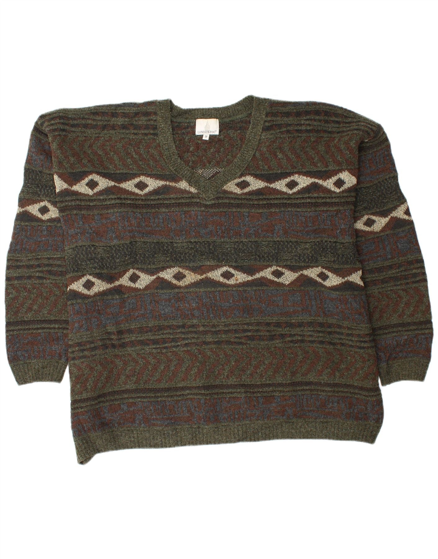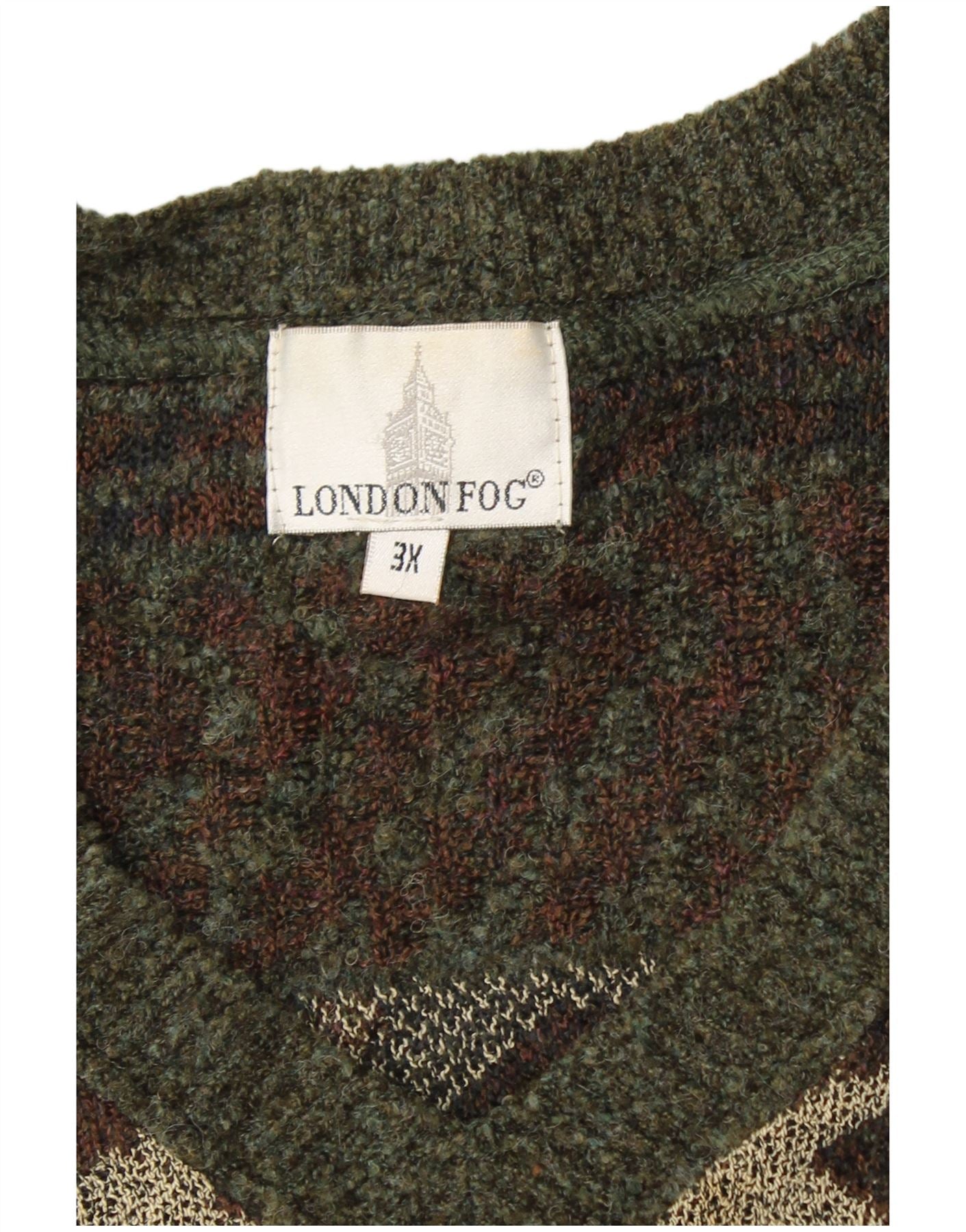 LONDON FOG Pulover cu decolteu în V pentru bărbați 3XL Kaki Fair Isle