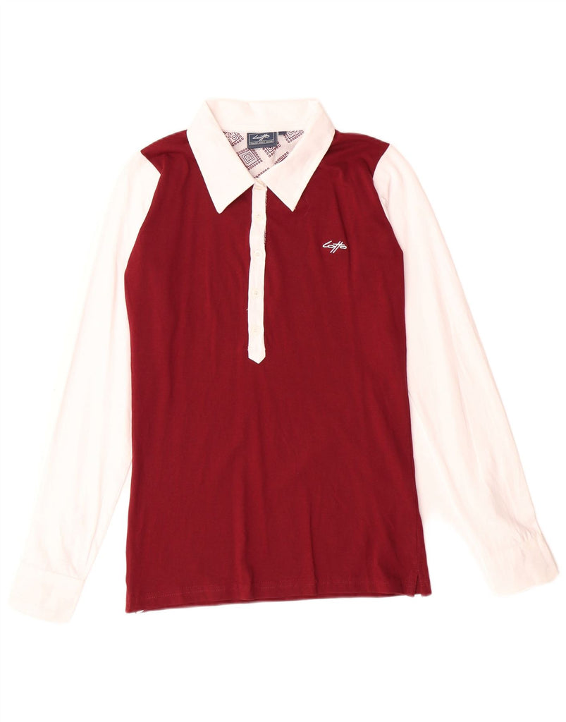 LOTTO Tricou polo Rugby cu mânecă lungă pentru femei UK 10 Mic Burgundy Colorblock