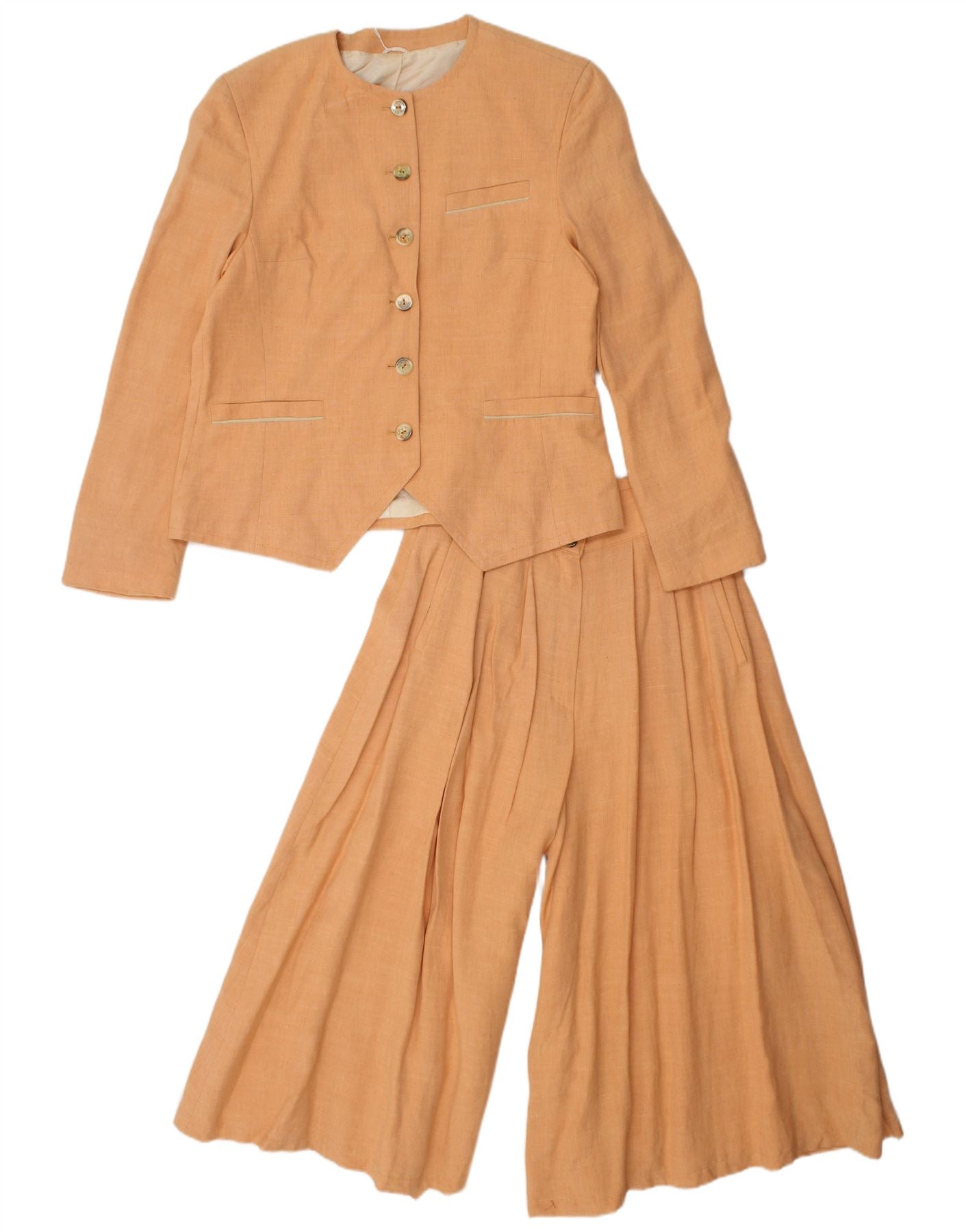 LOUISODER Womens 6 Button 2 Piece Suit UK 12 Medium W28 L18 Orange Viscose